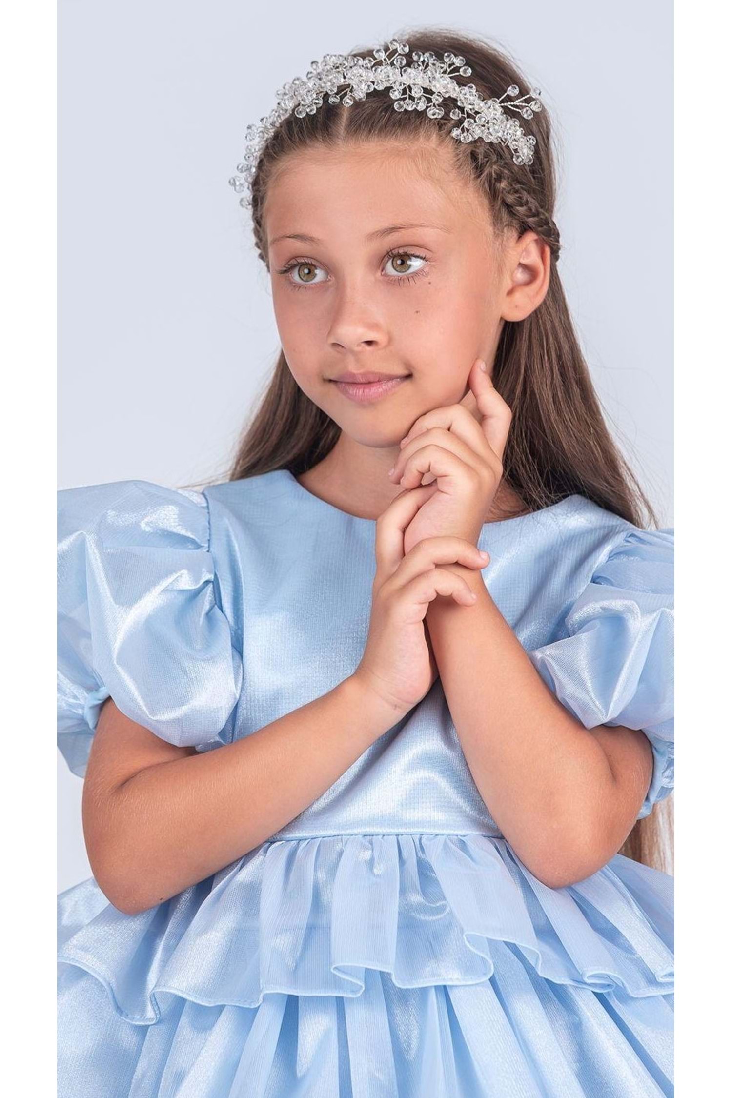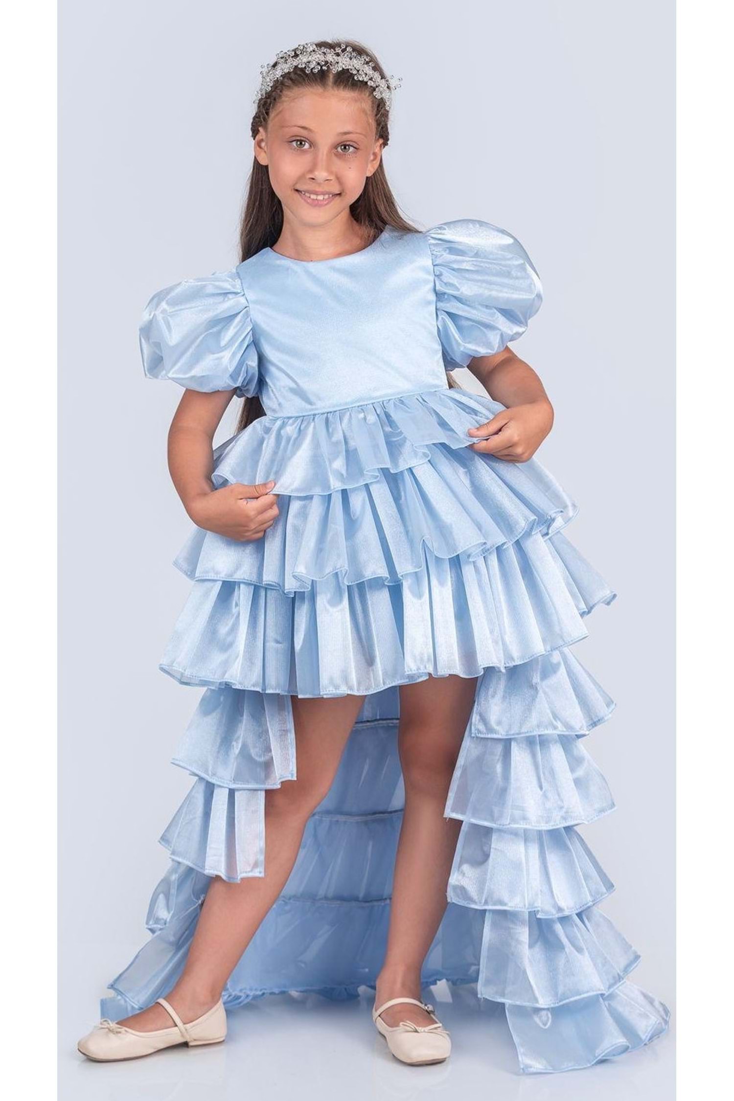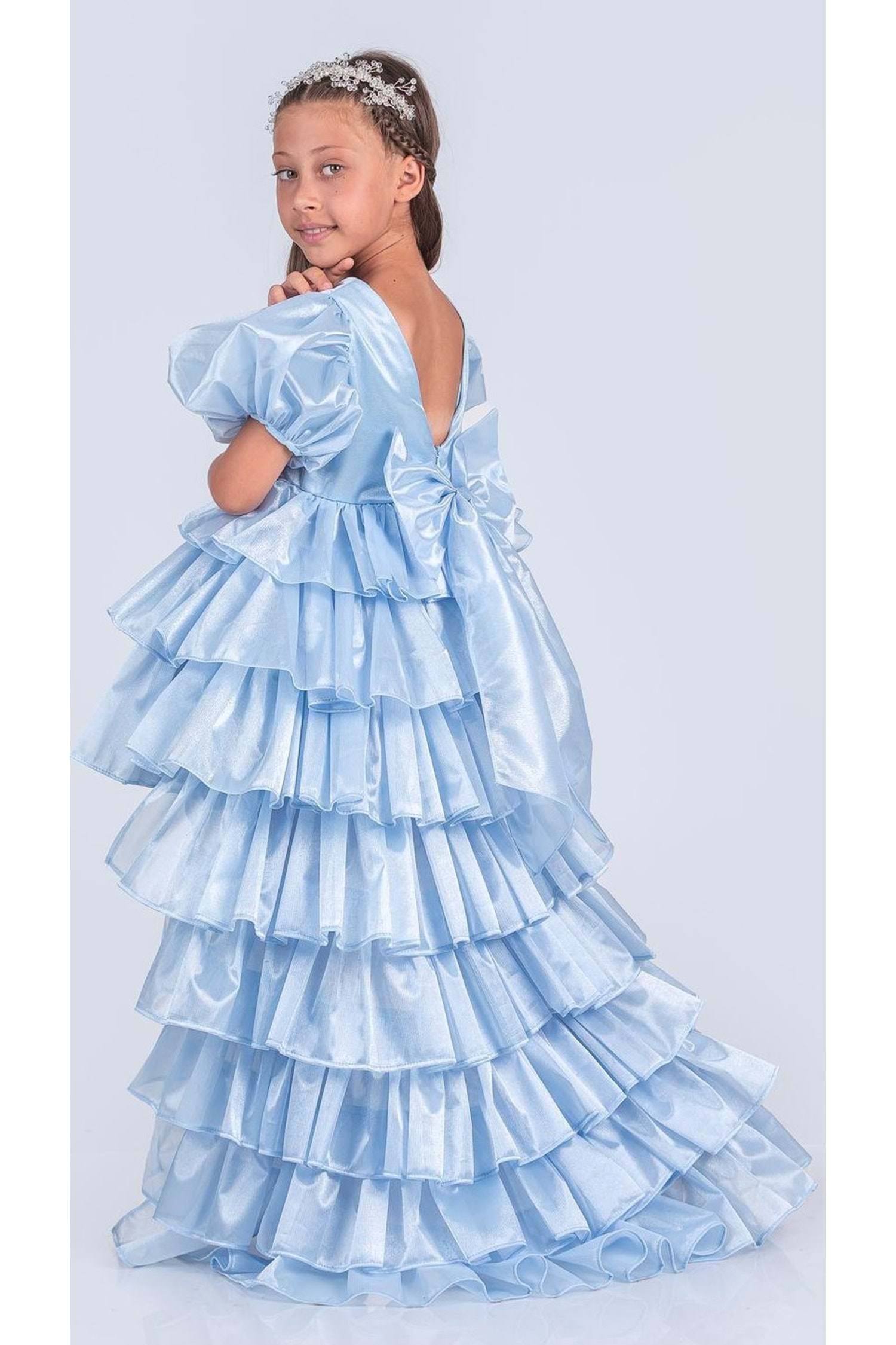 Kız Çocuk Eklenebilir Kuyruk Detaylı, Taçlı Aspendos Abiye Elbise M00758