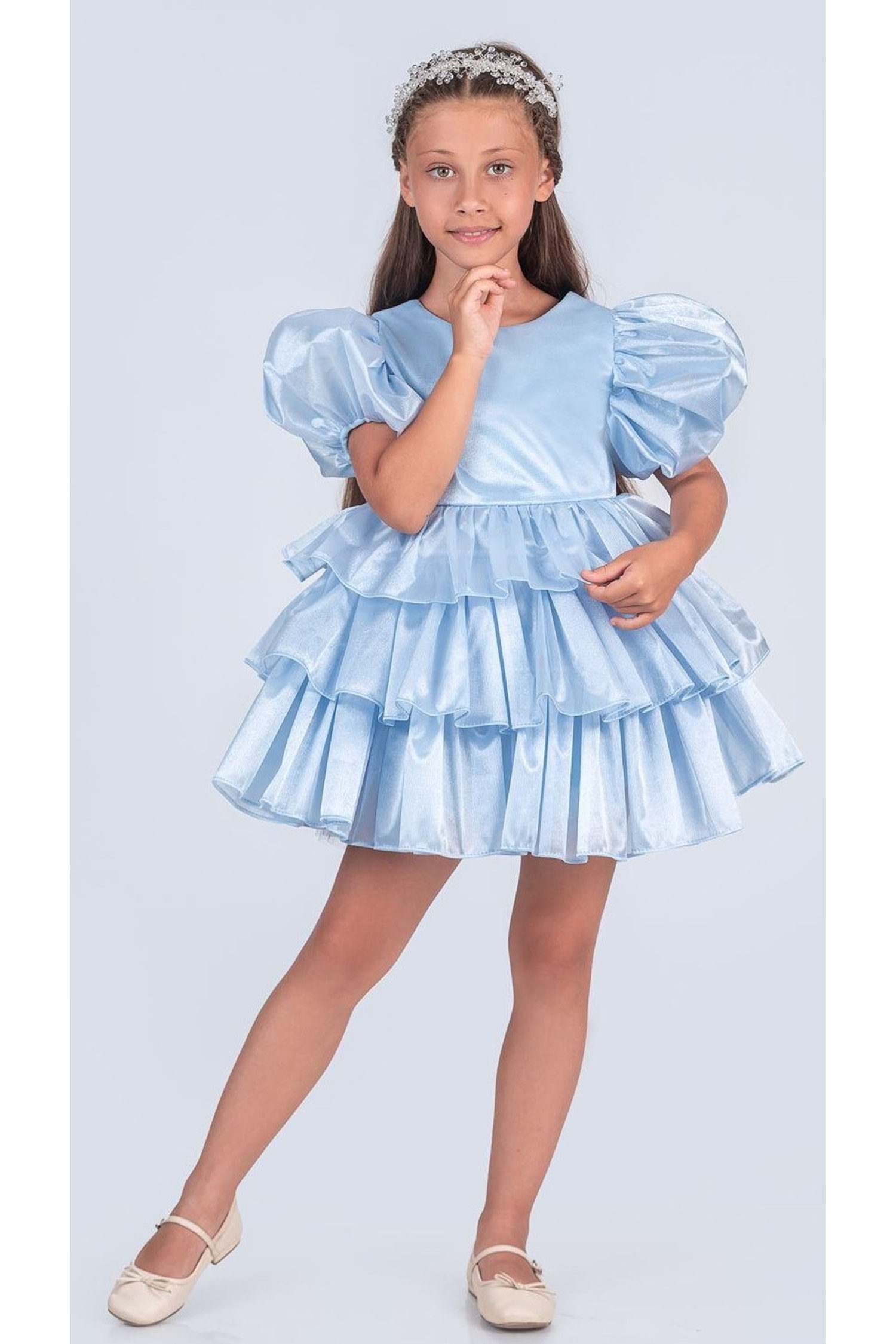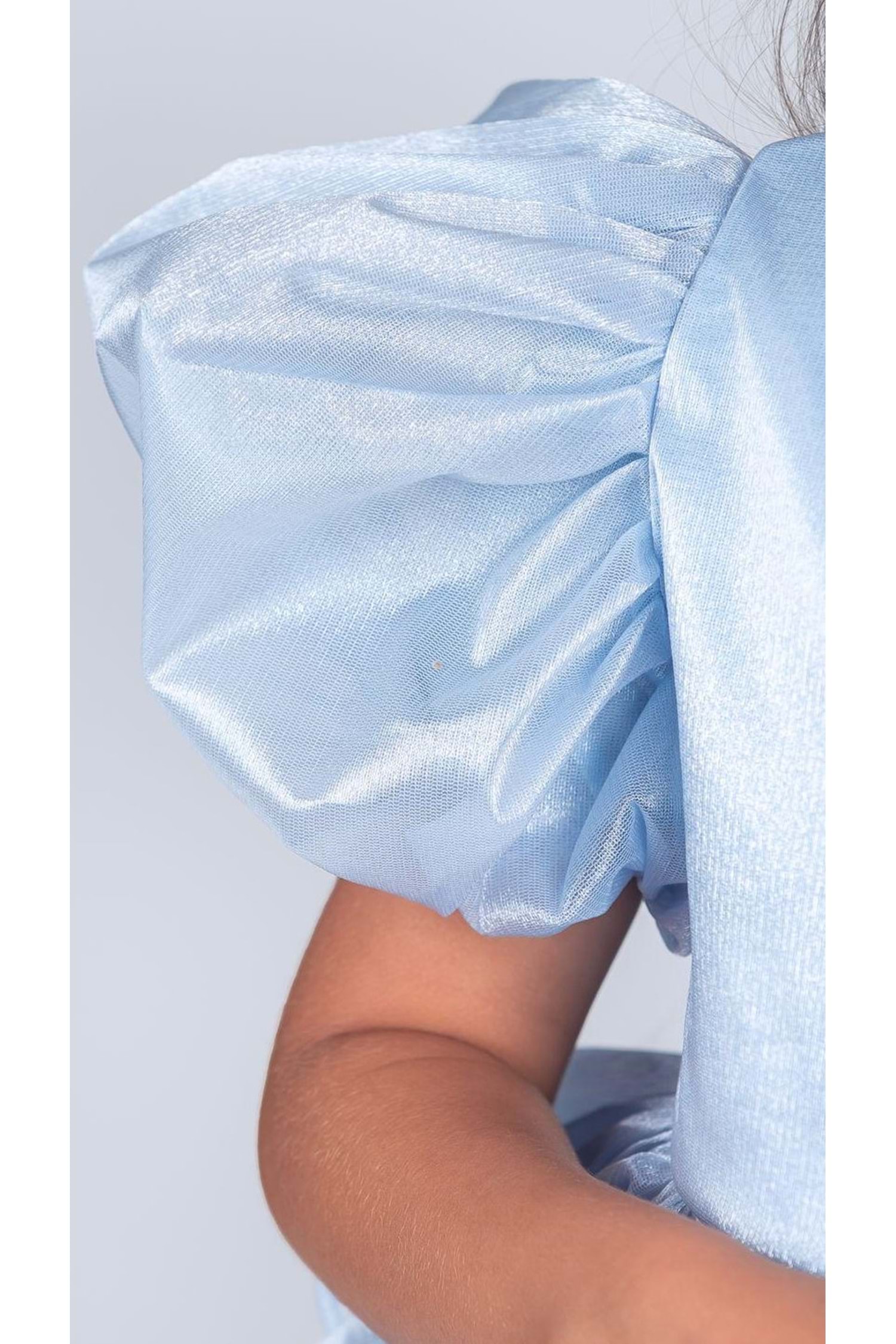 Kumaş: Parlak, hafif ve kabarık organze – kat kat volanlı görünüm için ideal