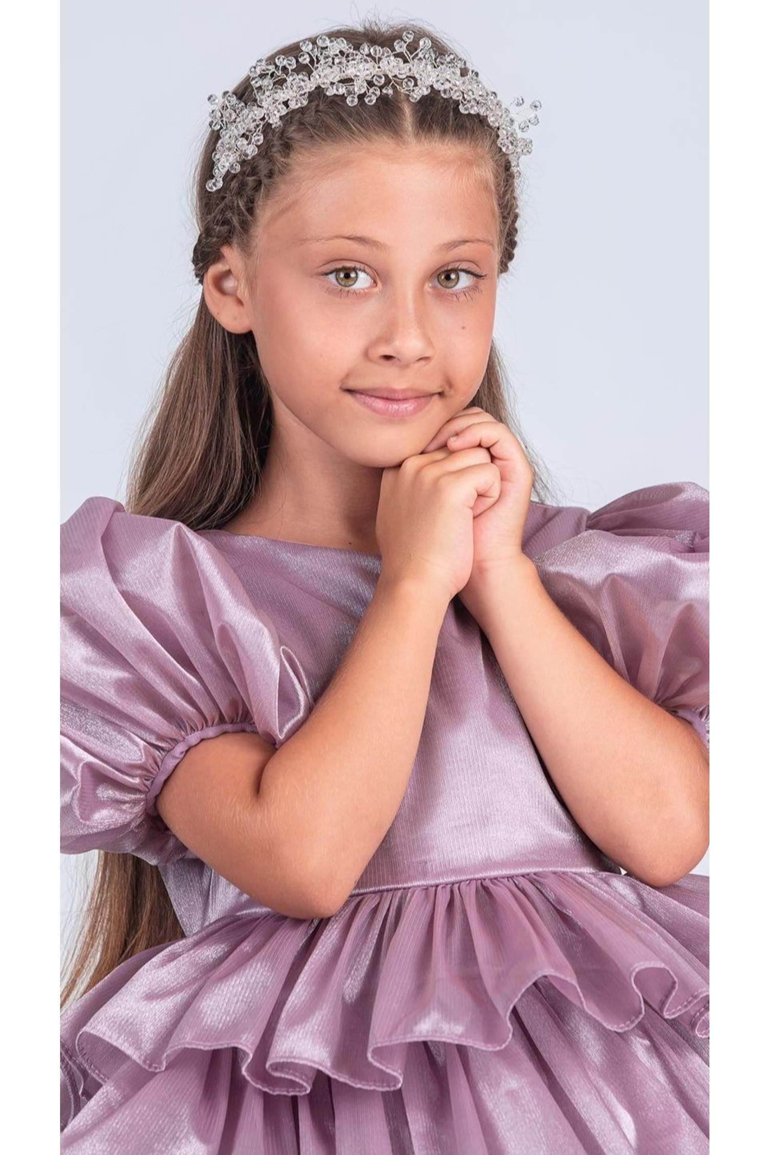 Kız Çocuk Eklenebilir Kuyruk Detaylı, Taçlı Aspendos Abiye Elbise M00758