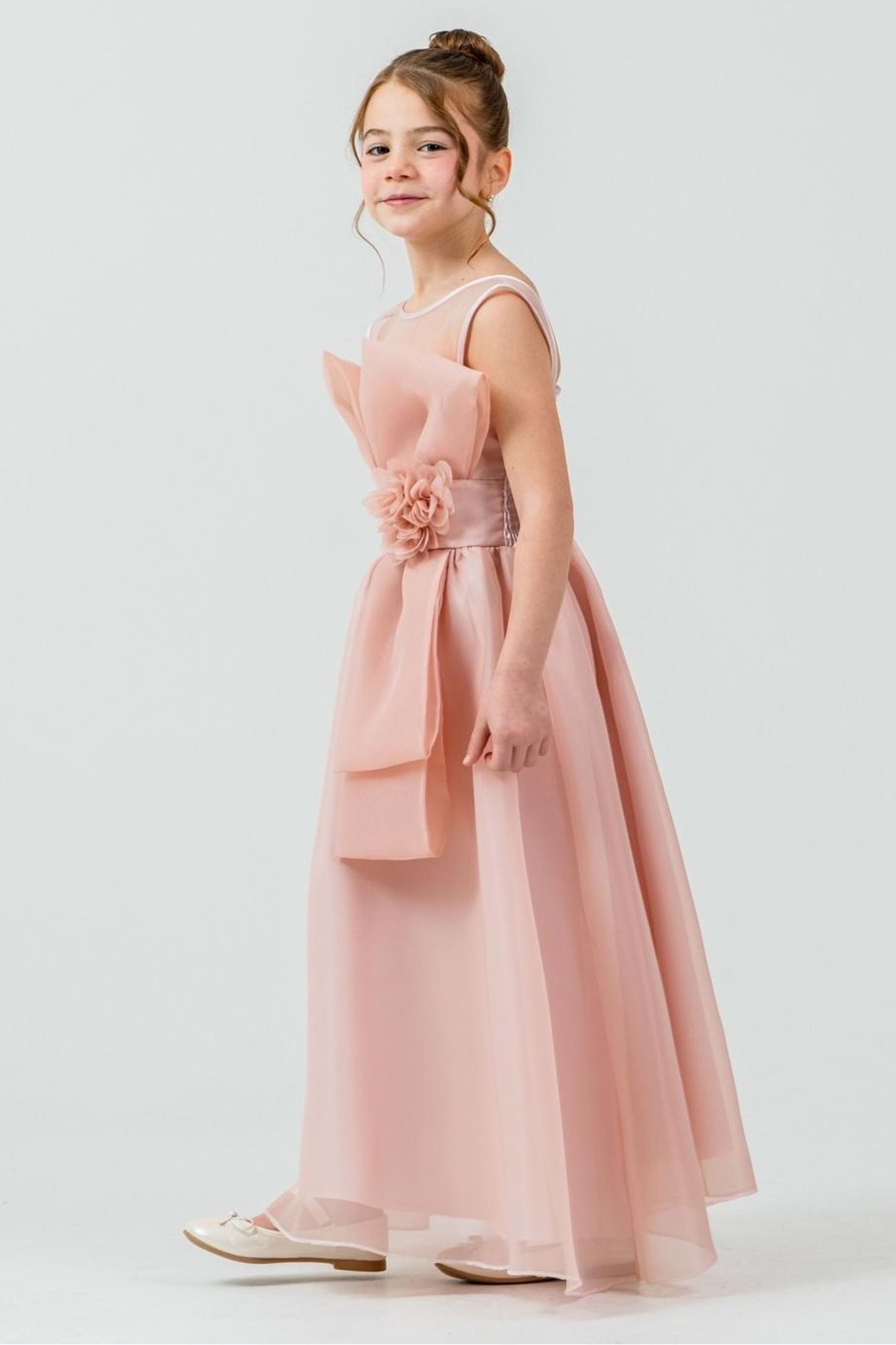 Kız Çocuk Organze Tül Çiçek ve Fiyonk Detaylı Gipe Sırtlı Prenses Abiye Elbise M00800