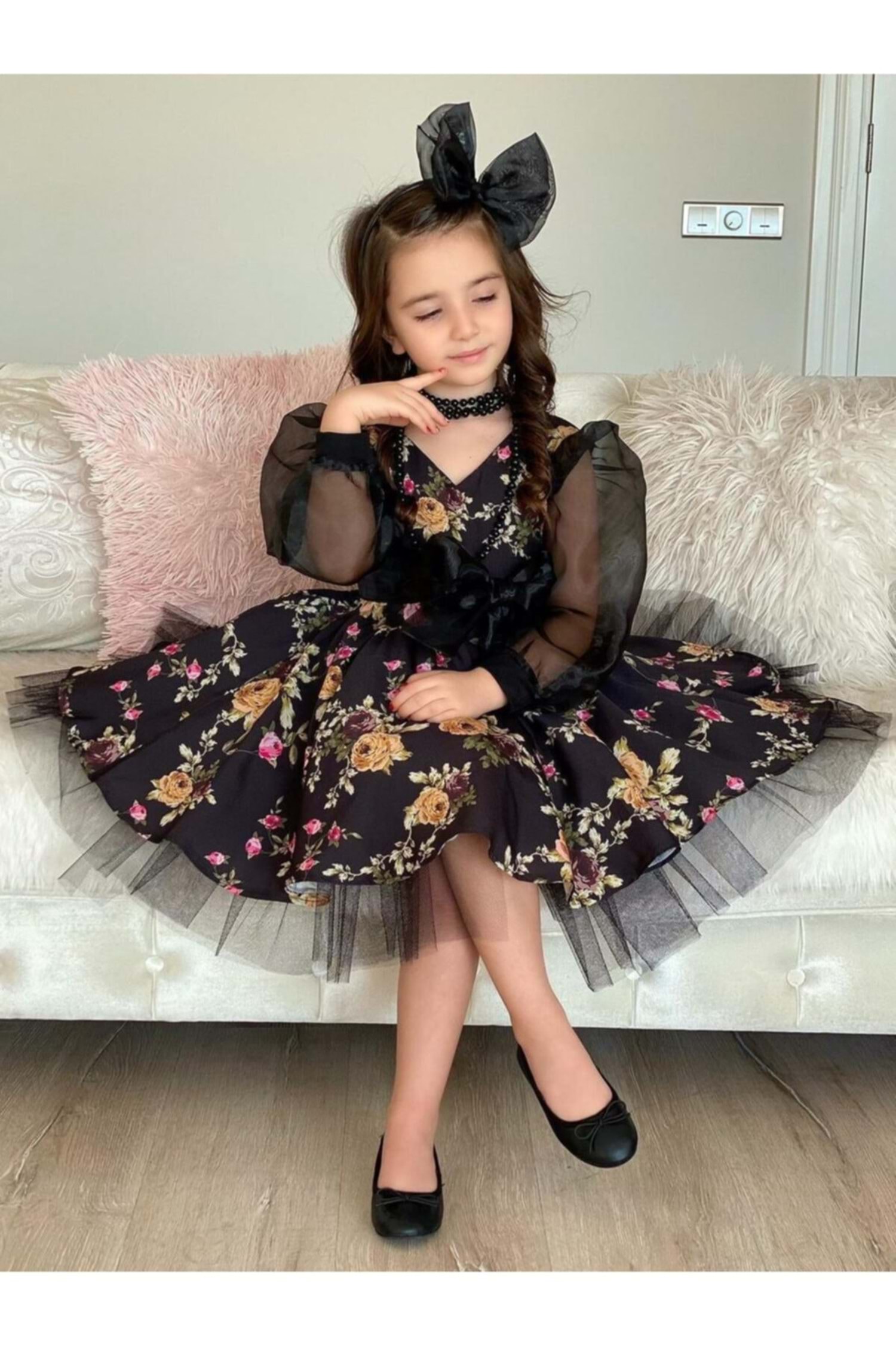 Saçbantlı kollar organze kumaş 2 parçadan oluşan altı pamuk astarlı kız çocuk elbise.