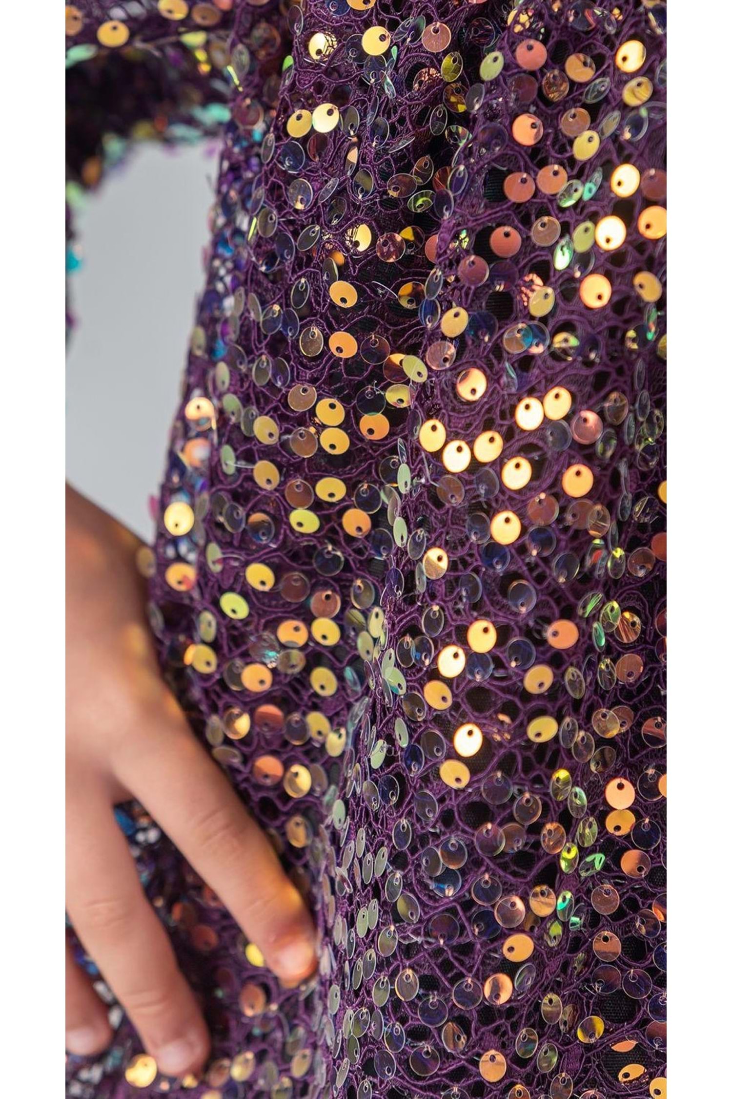 Kız Çocuk Pul-Payet Kumaş İle Üretilmiş Alttan Astarlı 4-5-6-7-8 Yaş Abiye Elbise