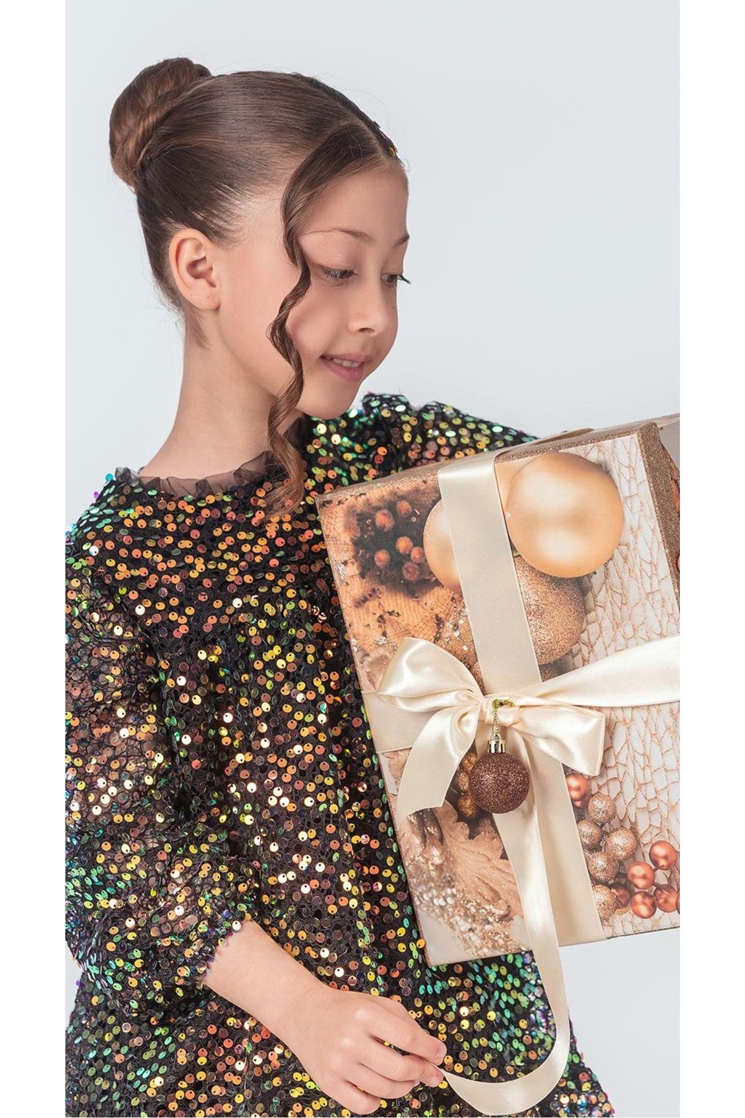 Kız Çocuk Pul-Payet Kumaş İle Üretilmiş Alttan Astarlı 4-5-6-7-8 Yaş Abiye Elbise
