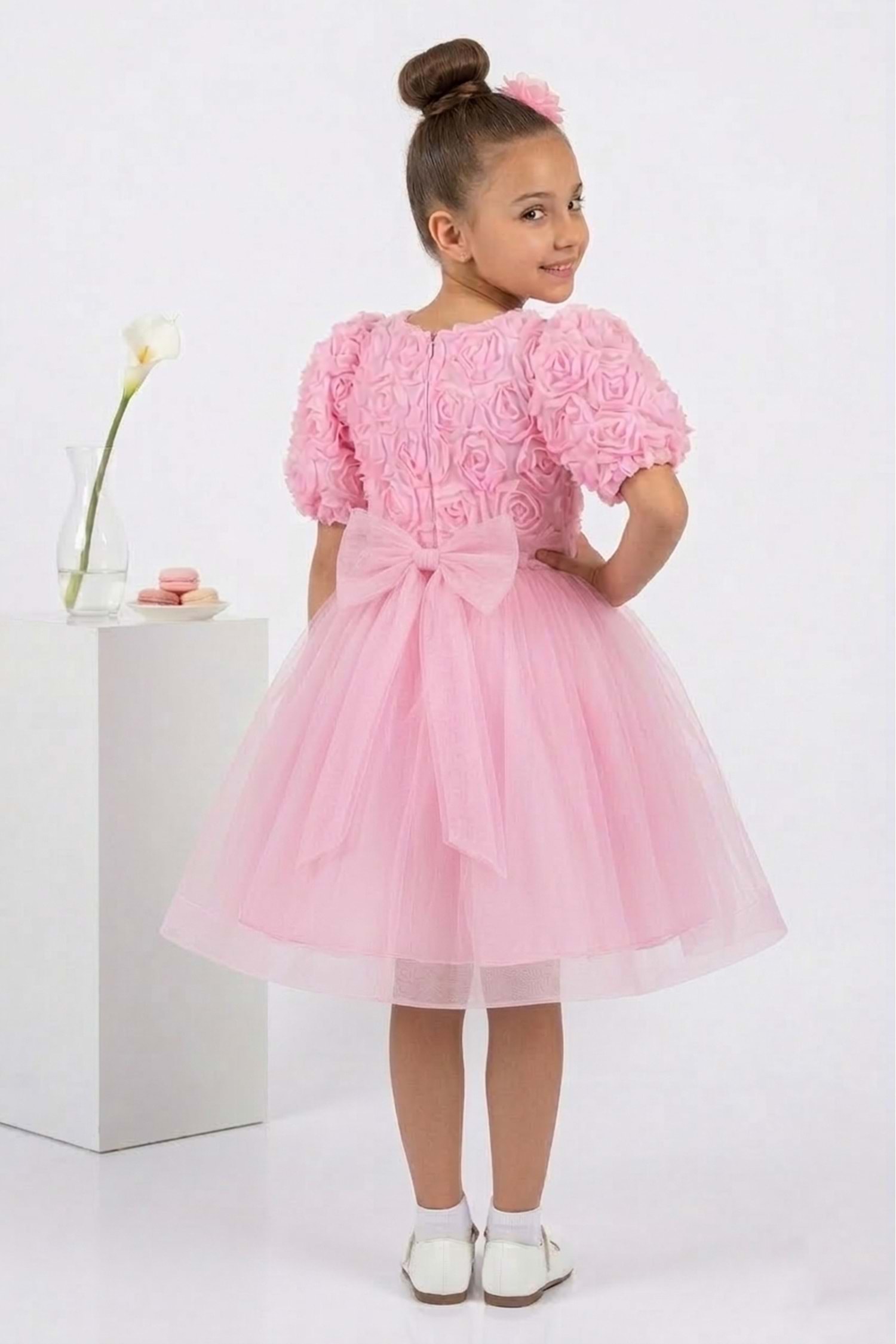 Kısa kollu tasarımı sayesinde yaz ve bahar organizasyonlarında rahatlıkla tercih edilir. Tütü formundaki kat kat tül eteği ve üzerine uygulanan gül detayları ile sahne ışığı gibi parlar. Çocuklar sever, anneler hayran kalır.