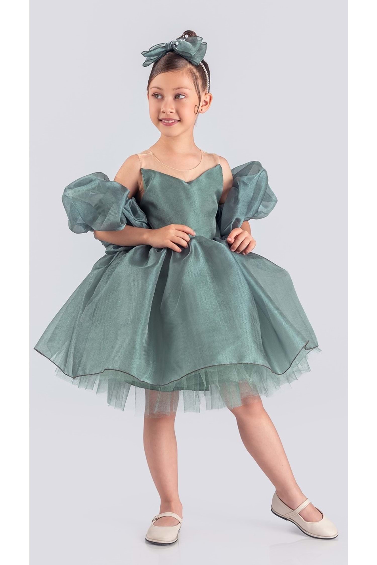 Kız Çocuk Abiye Elbise – Tül ve Krep Detaylı Özel Gün Elbisesi
