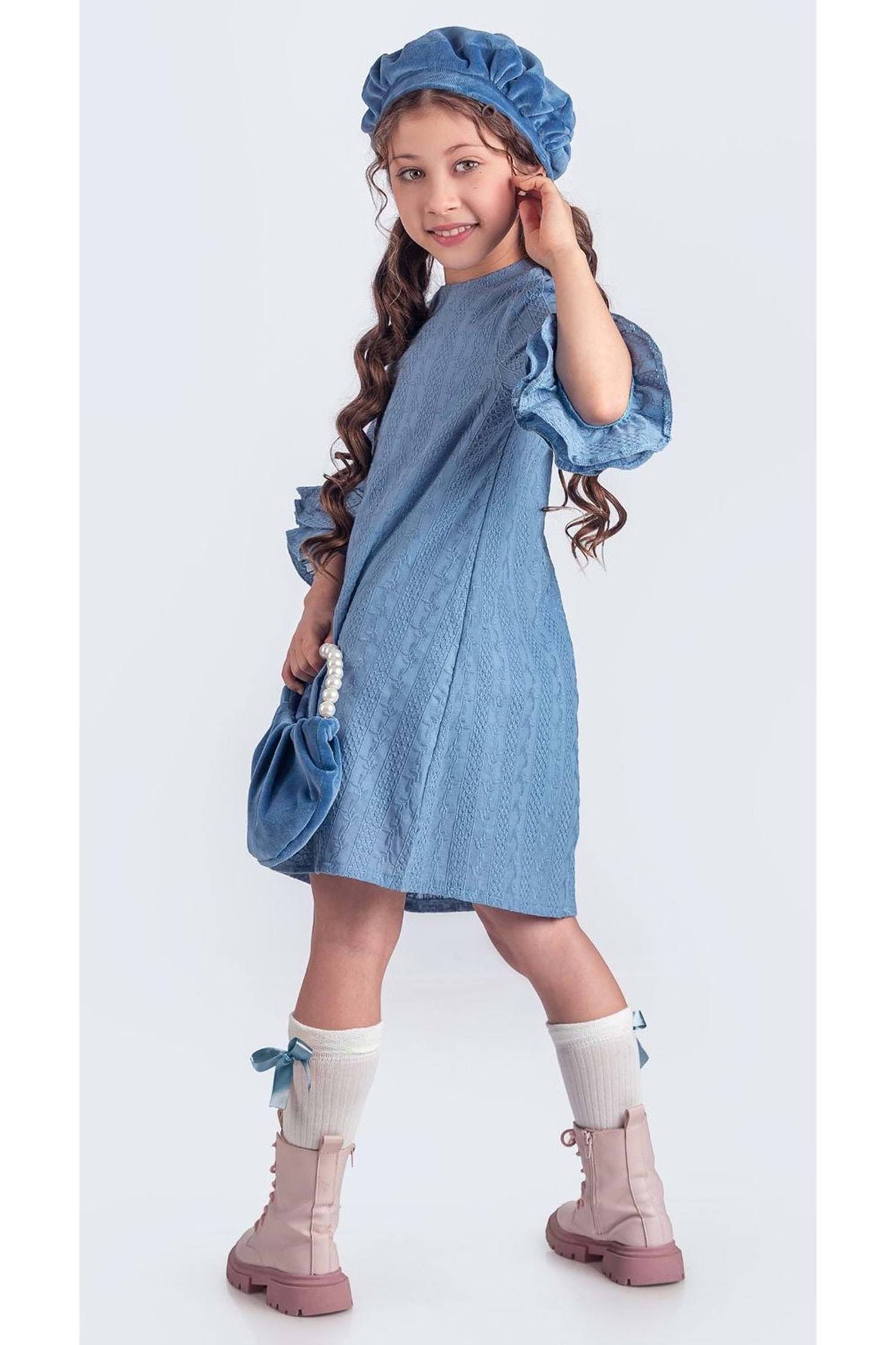 Miss Clarice Kız Çocuk Fransız Bere, Çanta, Çorap Ve Elbise Takım M00704