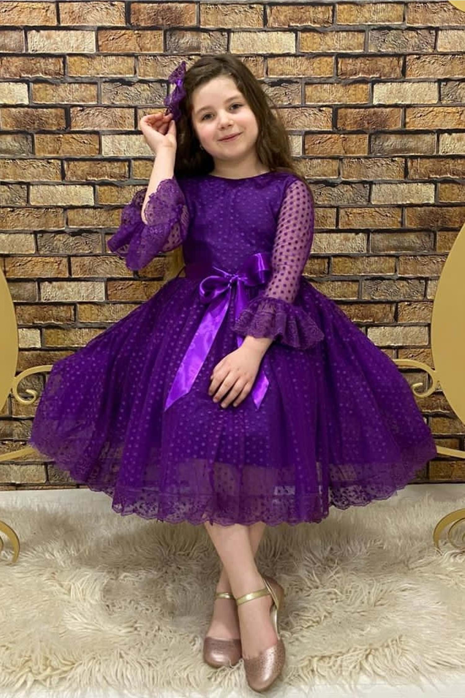 Toka ile birlikte İki parçadan oluşar dantel kumaşlı elbise. T