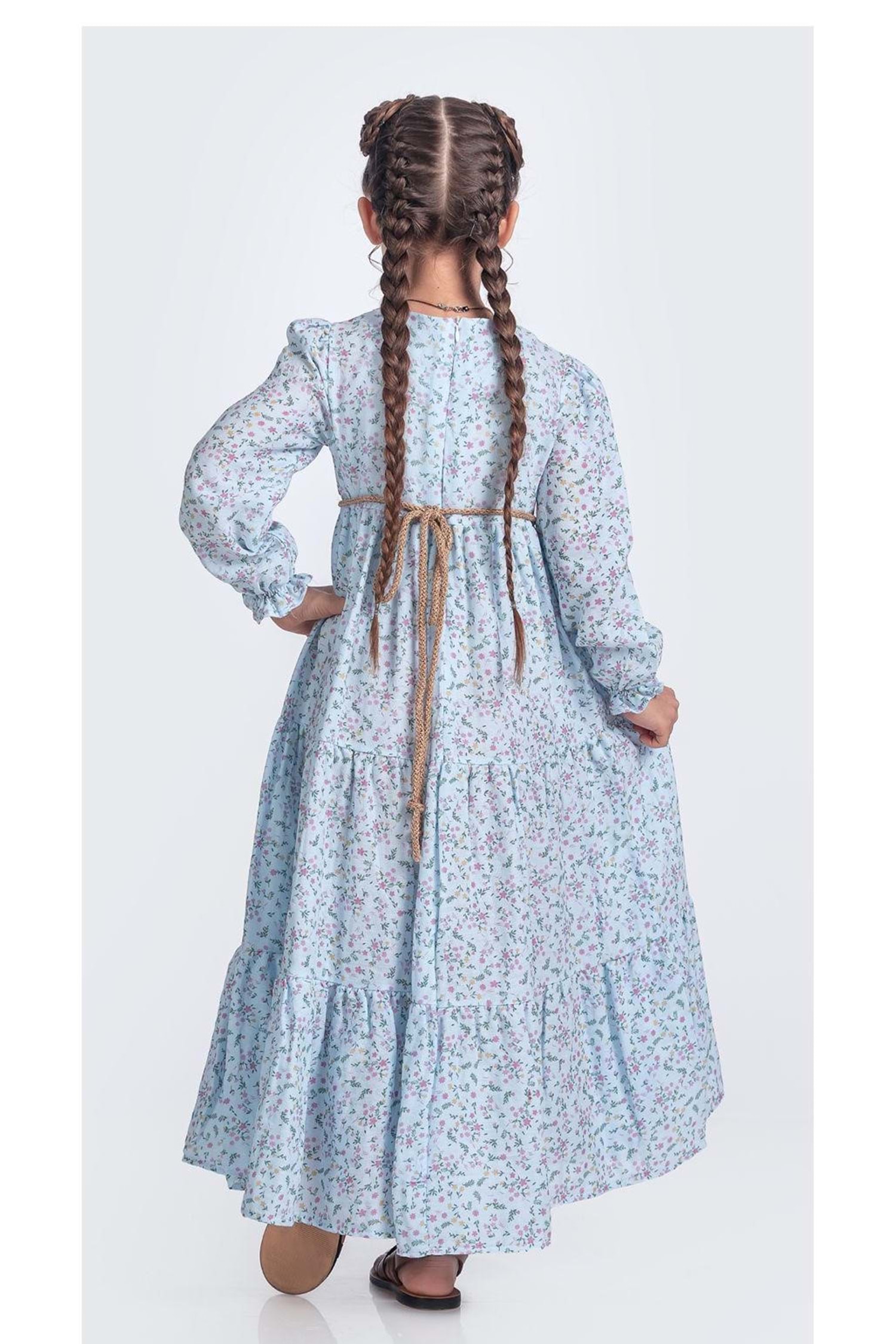Pamuklu Müslin Kumaştan Üretilmiş Uzun Kol Tesettür Kız Çocuk Elbise
