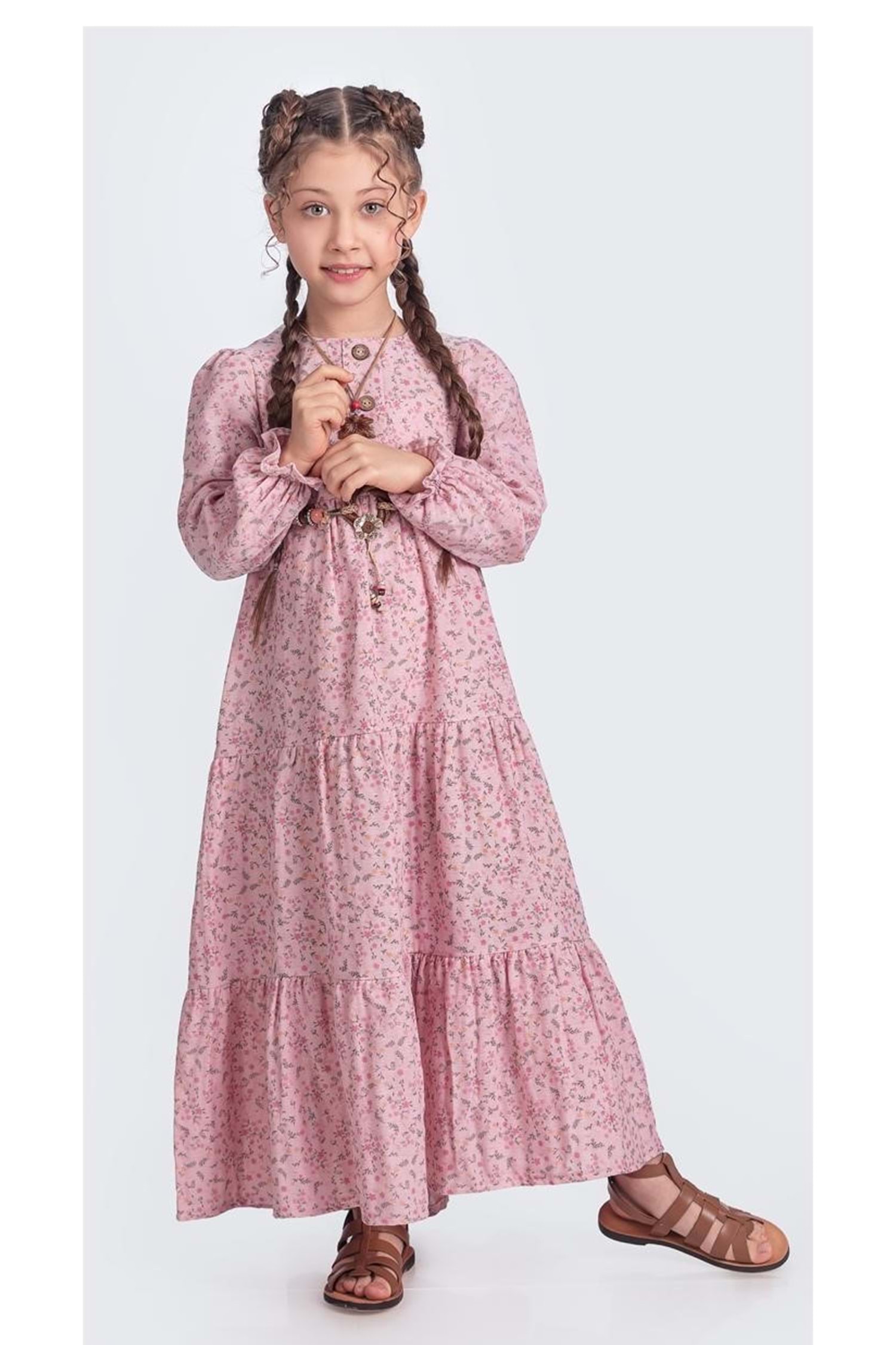 Müslin Kumaş Kız Çocuk Uzun Kol Tesettür Elbise M00705