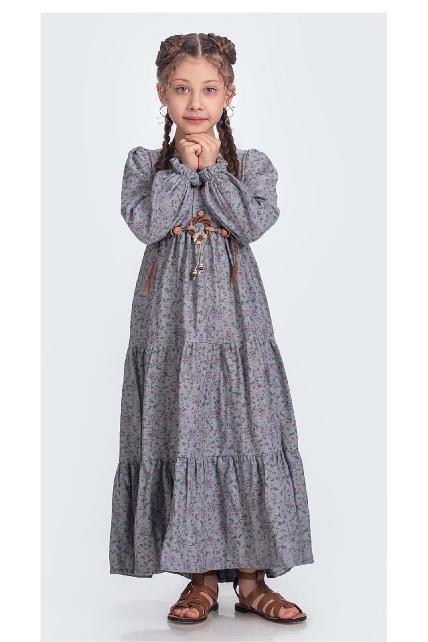 Müslin Kumaş Kız Çocuk Uzun Kol Tesettür Elbise M00705