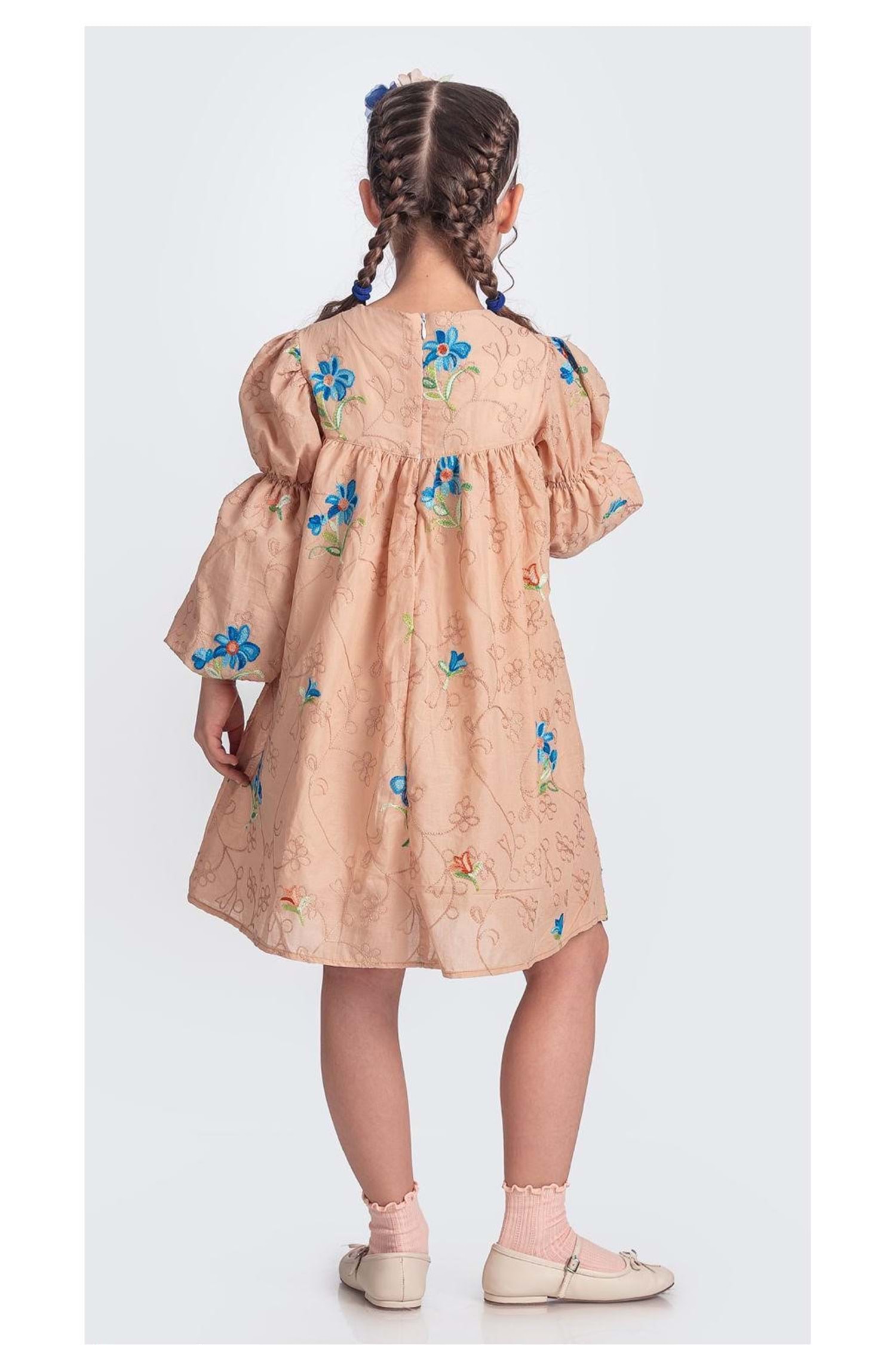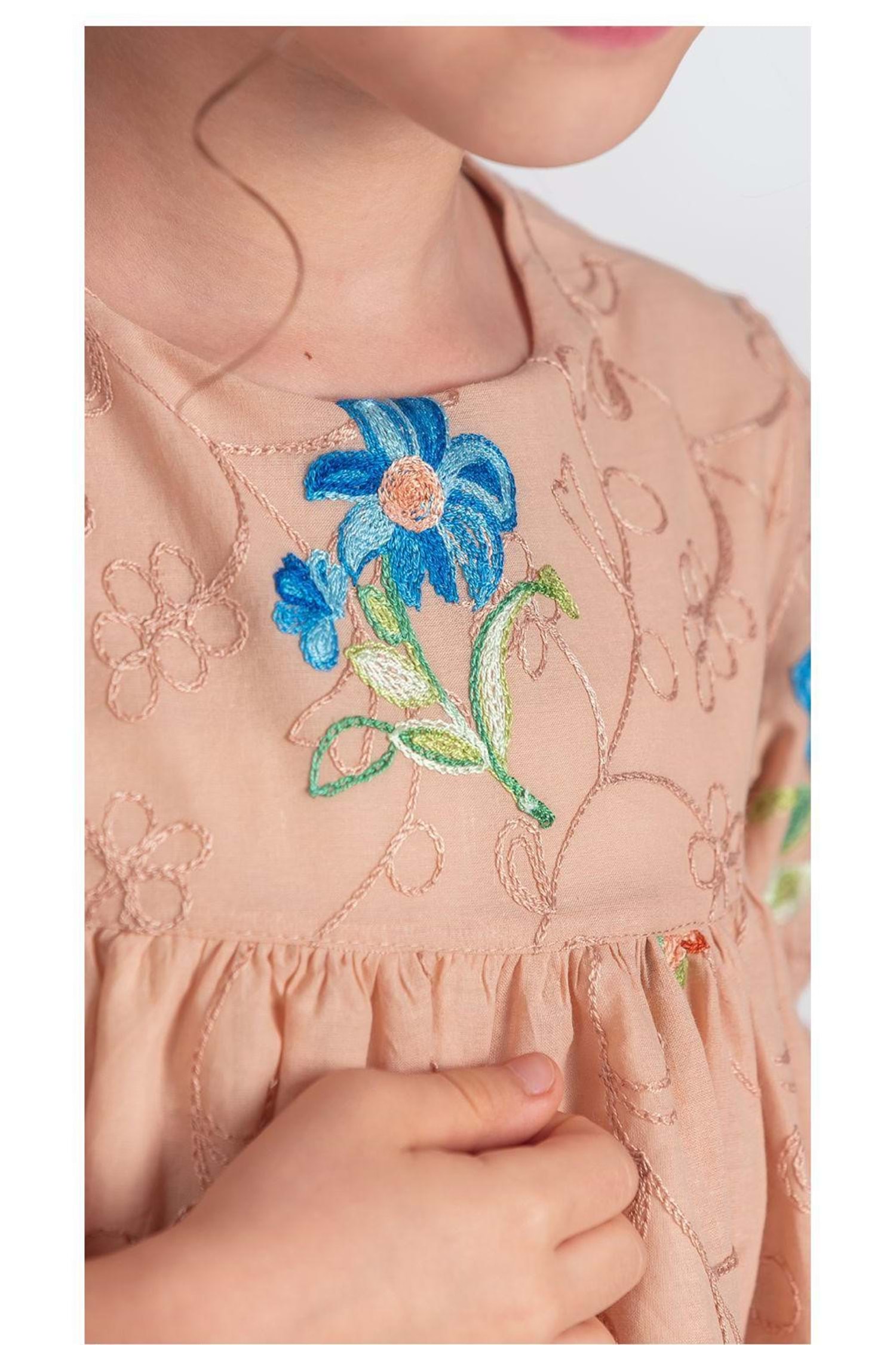 Pamuklu Müslin Kumaştan Üretilmiş Uzun Kol Toka İle Birlikte 2 Parça Kız Çocuk Elbise