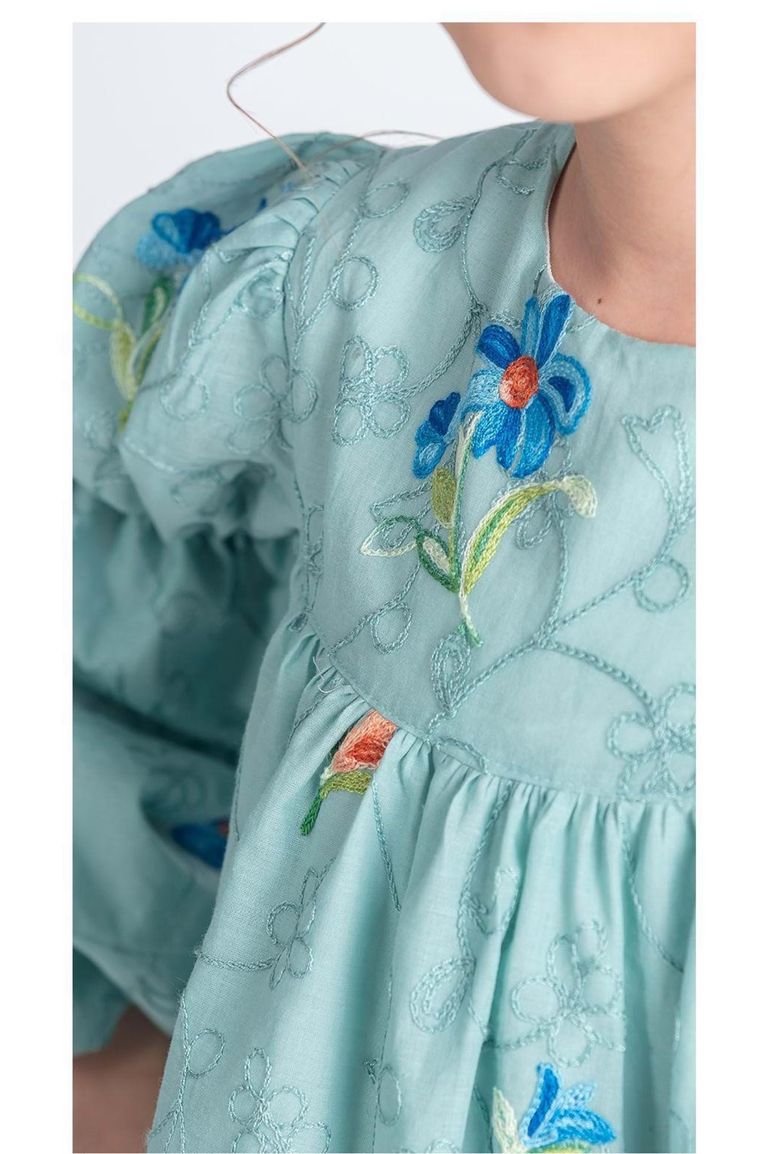 Pamuklu Müslin Kumaştan Üretilmiş Uzun Kol Toka İle Birlikte 2 Parça Kız Çocuk Elbise