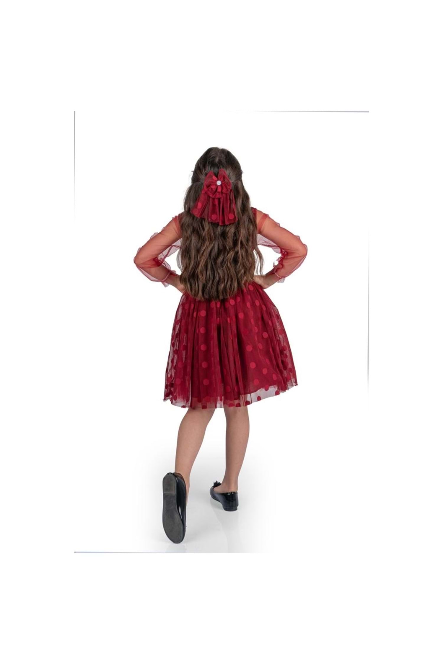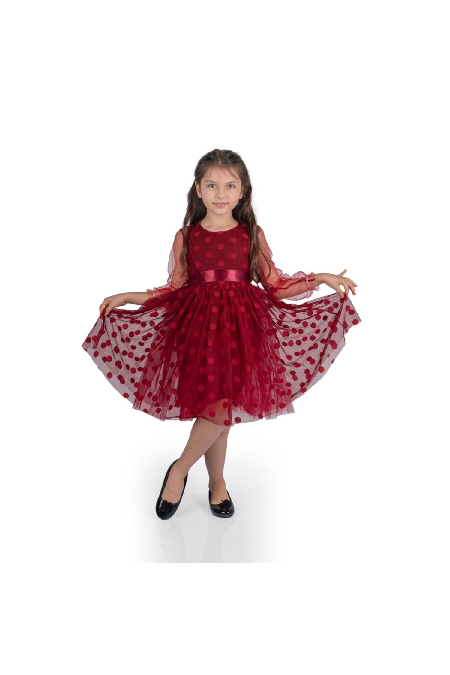 Prenses İri Puanlı Tokalı Dantel Kumaş Kız Çocuk Elbise MNK0547
