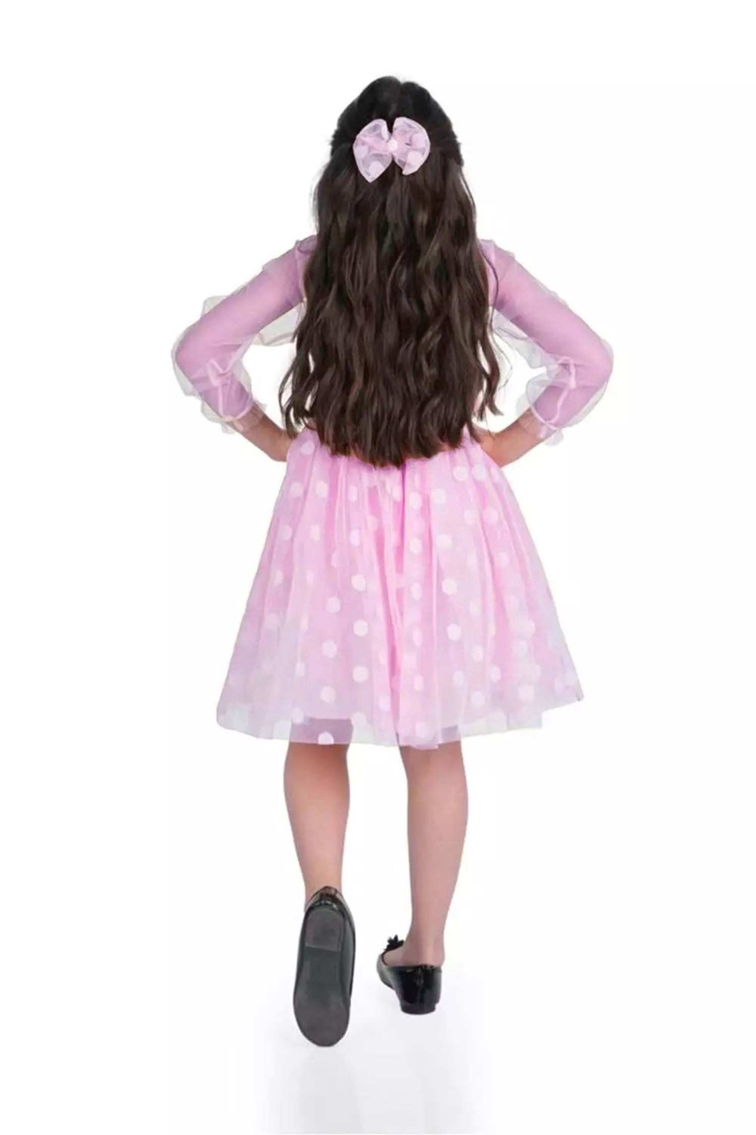 Prenses İri Puanlı Tokalı Dantel Kumaş Kız Çocuk Elbise MNK0547