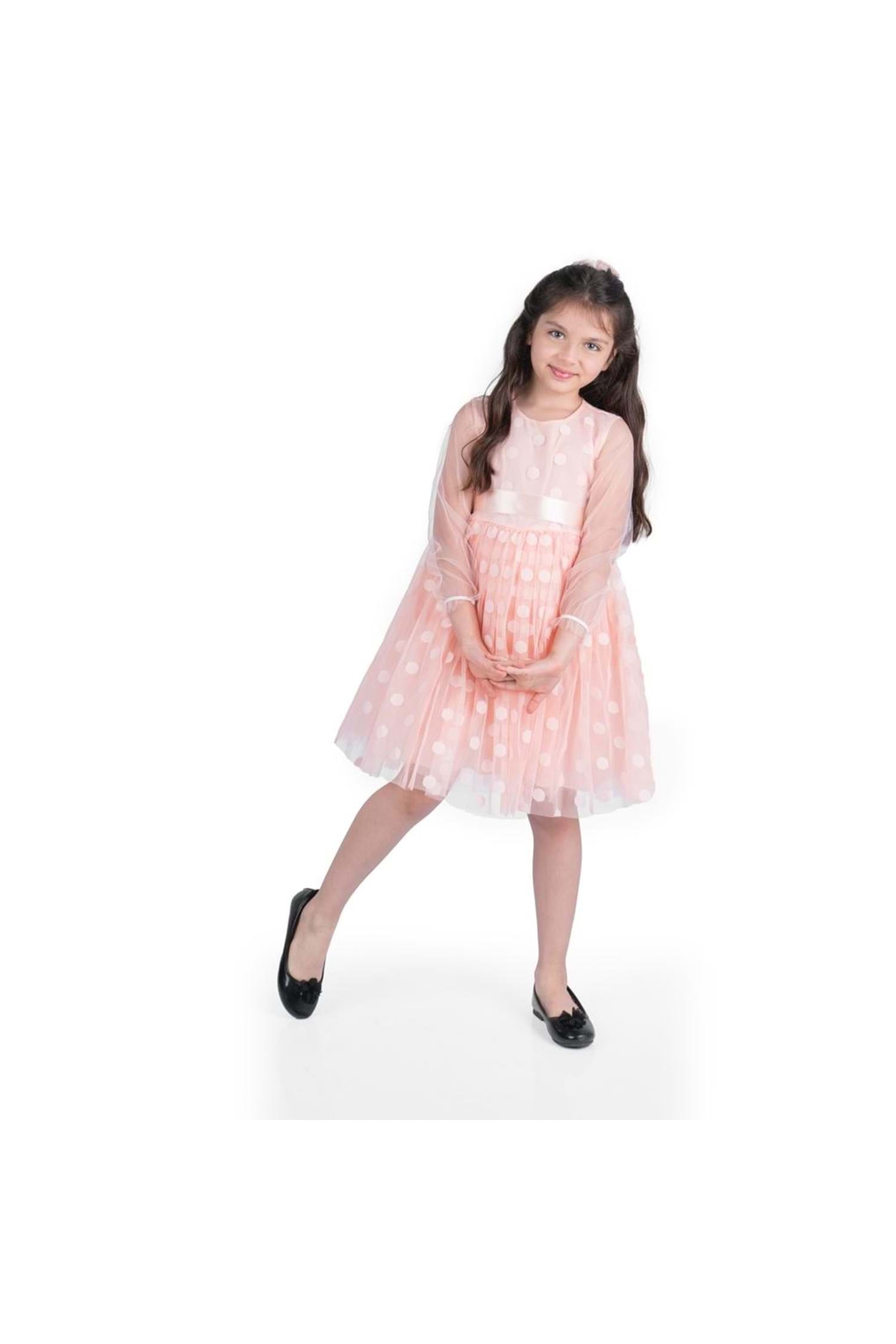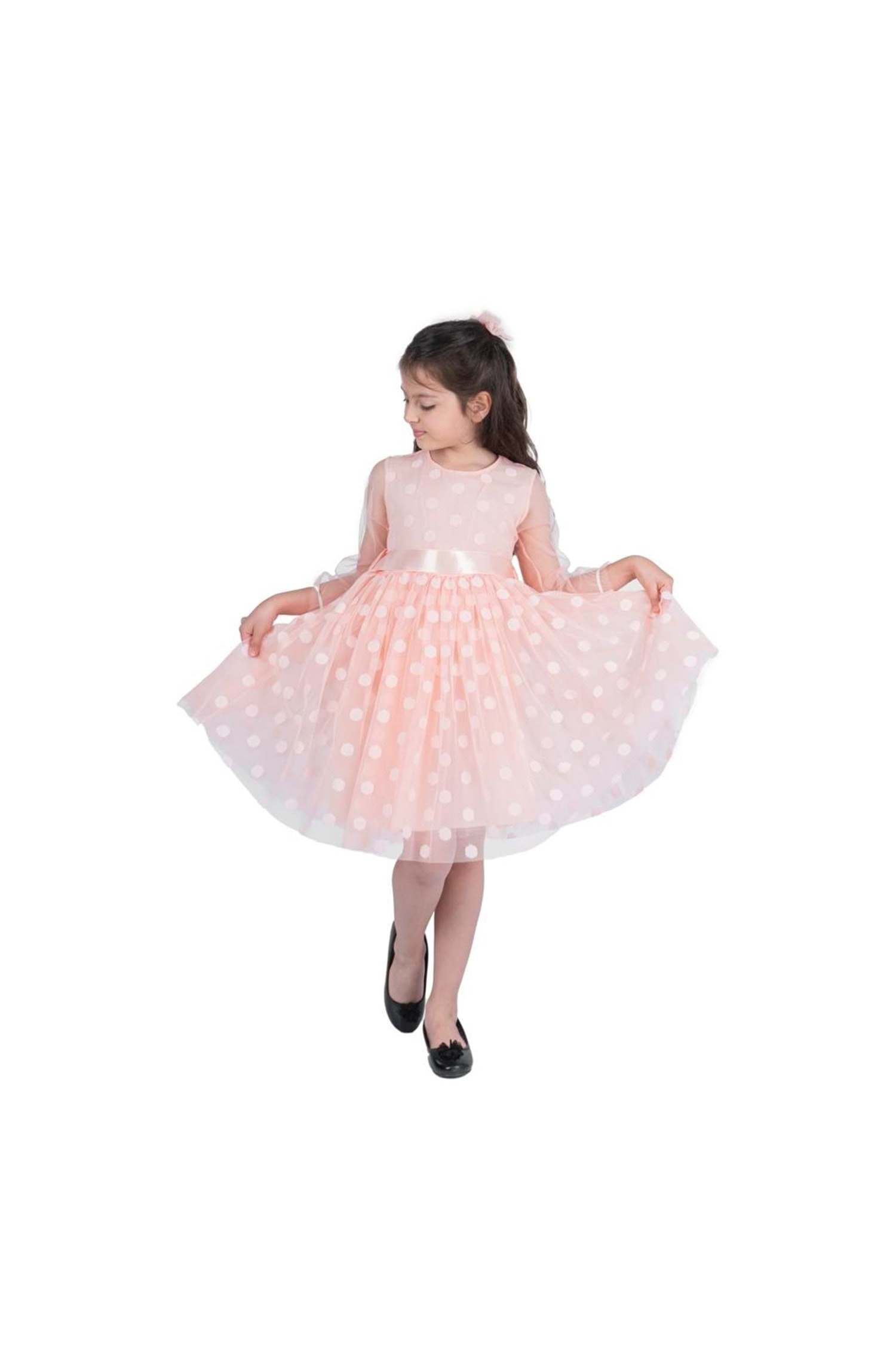 Prenses İri Puanlı Tokalı Dantel Kumaş Kız Çocuk Elbise MNK0547
