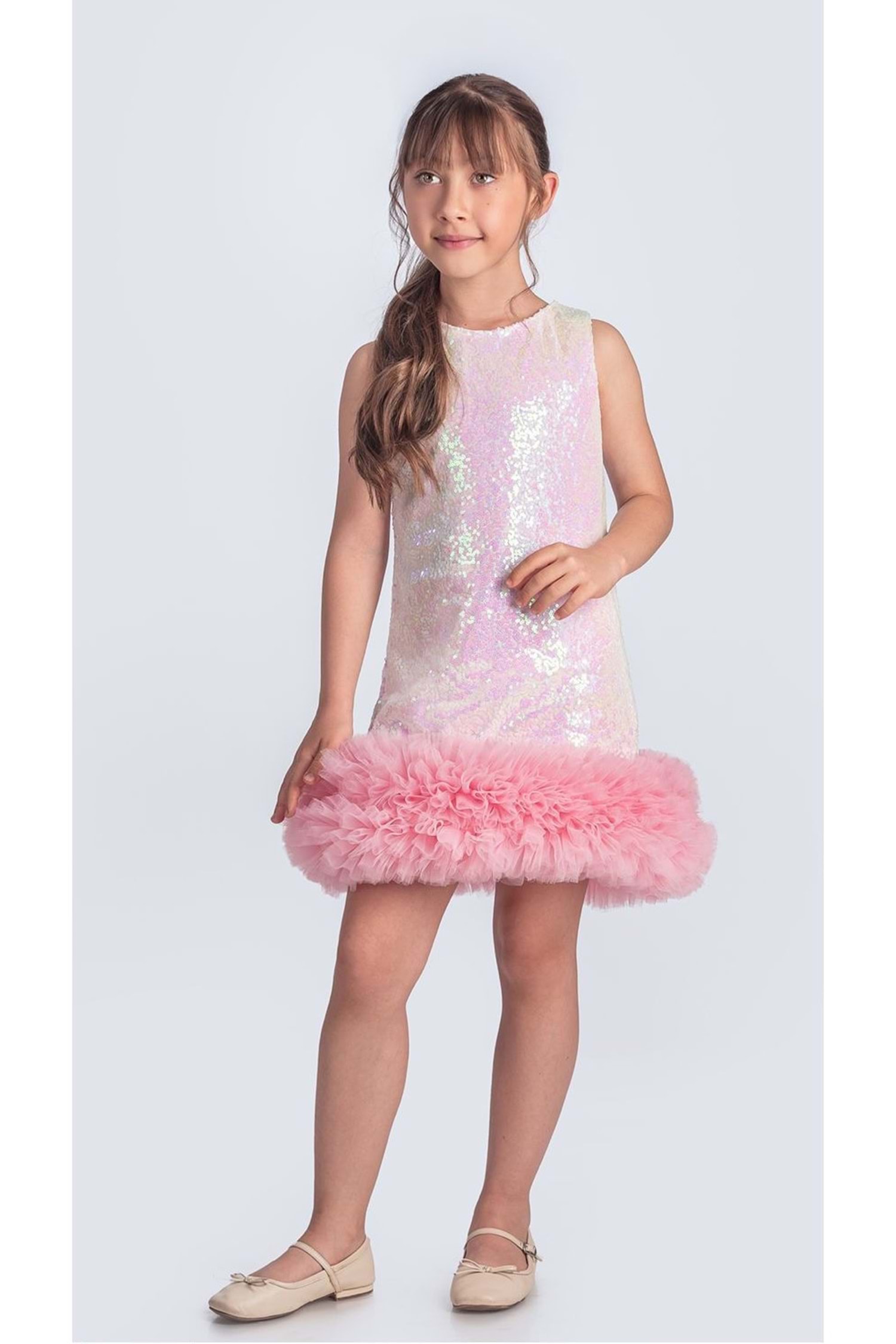 Özel günlerde kızınızın yıldız gibi parlamasını sağlayacak bu simli tüllü abiye elbise, göz alıcı tasarımıyla fark yaratıyor. Payetli üst kısmı ve kabarık tül etek detayı ile doğum günü, düğün, mezuniyet gibi etkinliklerde tercih edilebilecek mükemmel bir seçimdir.