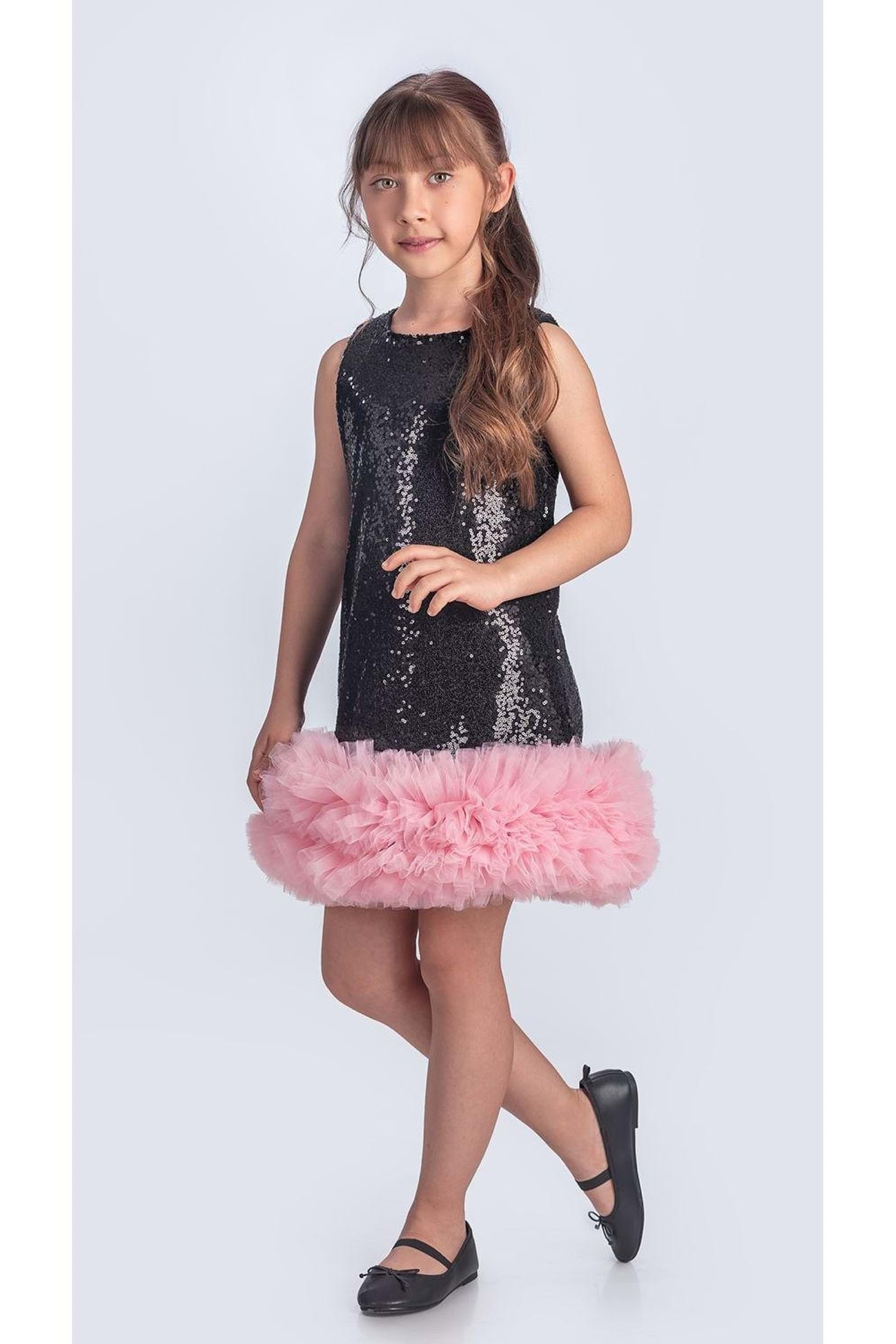Özel günlerde kızınızın yıldız gibi parlamasını sağlayacak bu simli tüllü abiye elbise, göz alıcı tasarımıyla fark yaratıyor. Payetli üst kısmı ve kabarık tül etek detayı ile doğum günü, düğün, mezuniyet gibi etkinliklerde tercih edilebilecek mükemmel bir seçimdir.