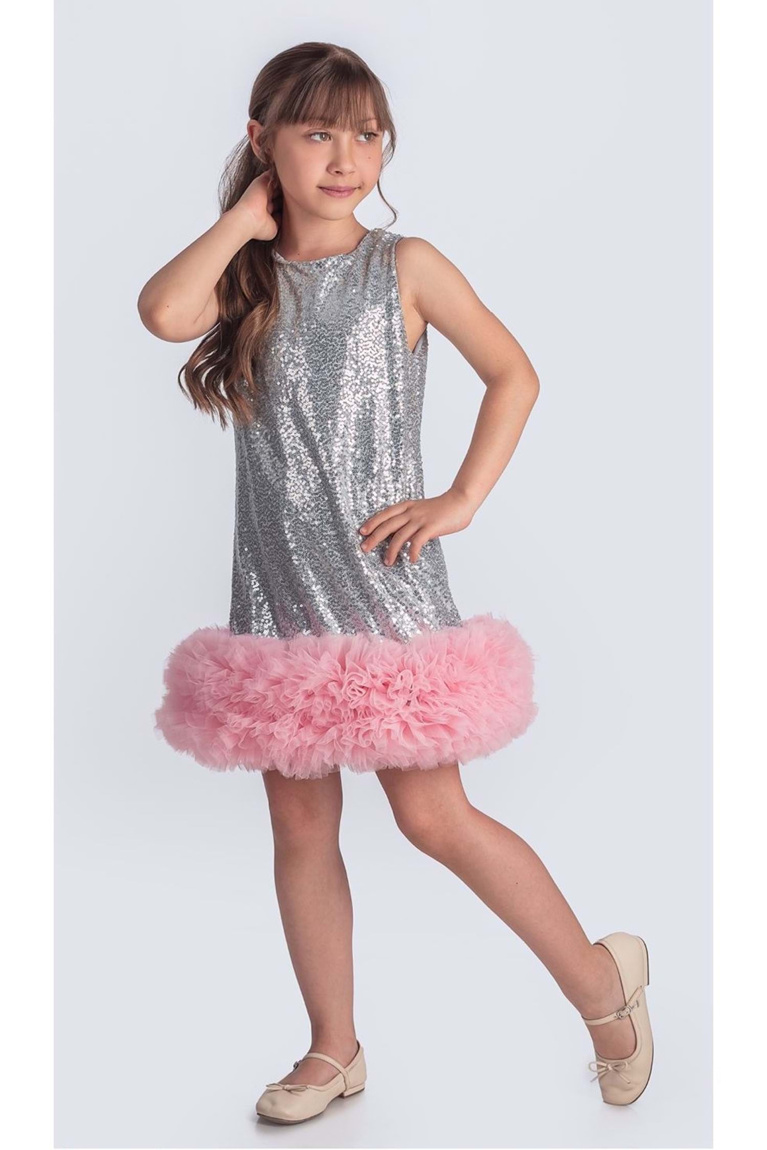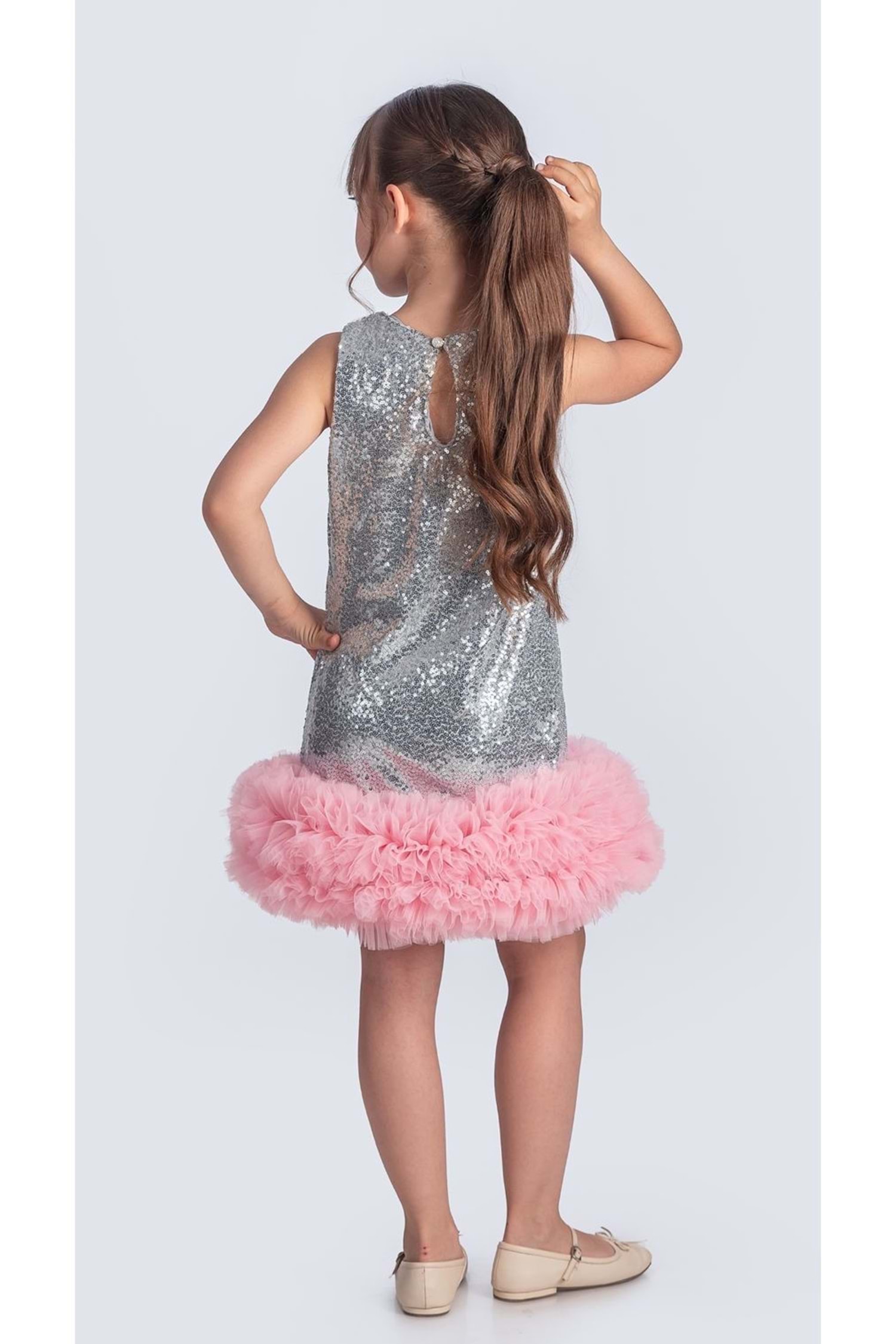Kız Çocuk Simli Tüllü Abiye Elbise