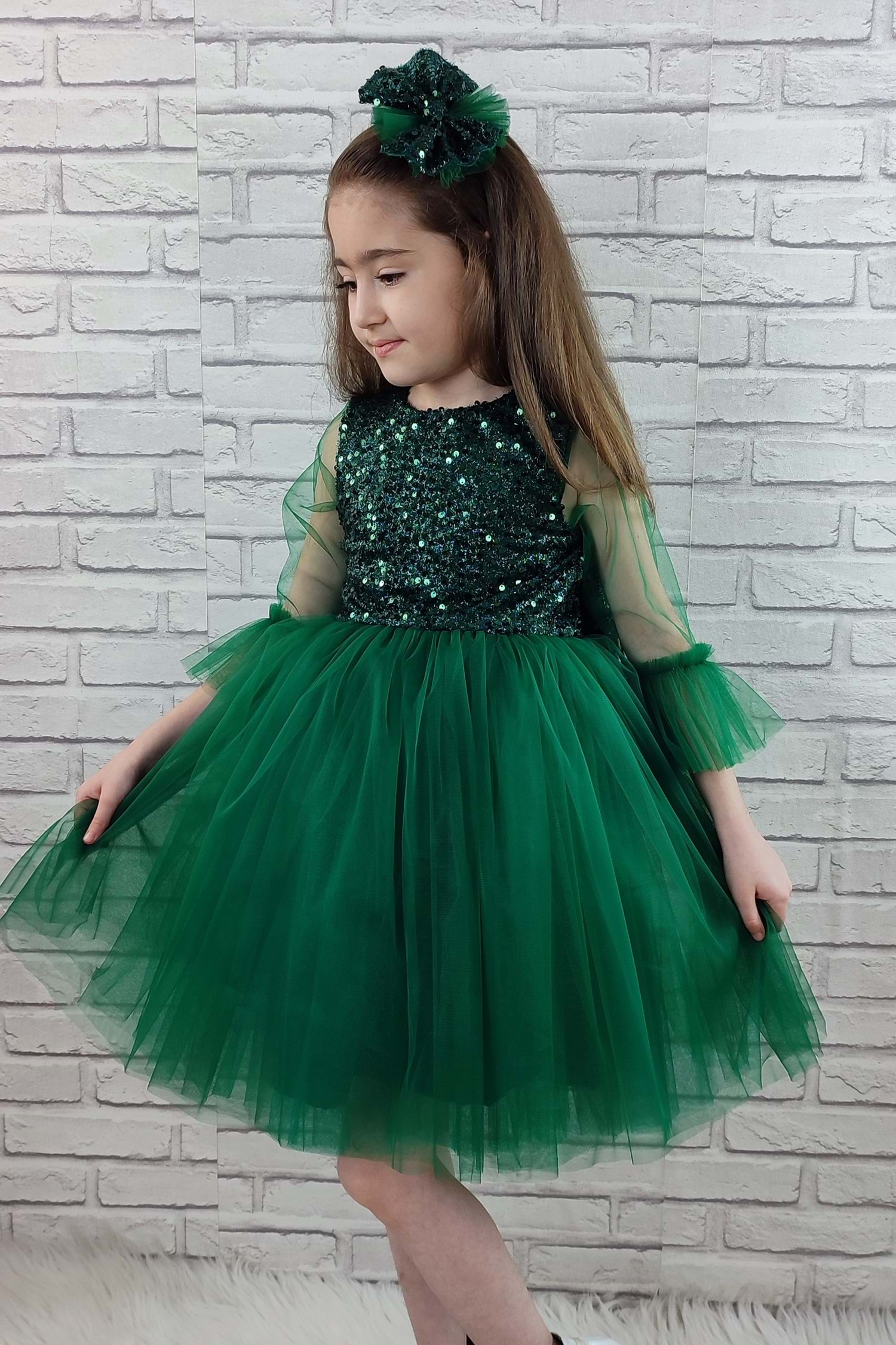 Saç tokası ile birlikte iki parçadan oluşan kız çocuk abiye elbise.