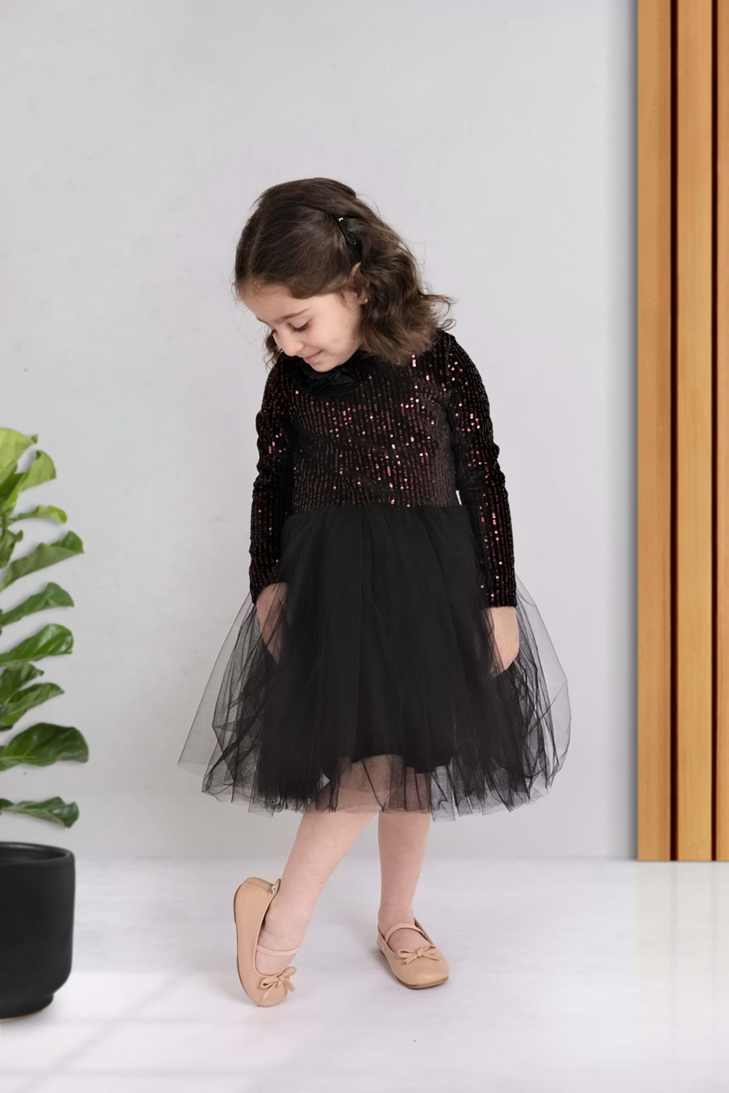 Saç tokası ile birlikte iki parçadan oluşan kız çocuk abiye elbise.