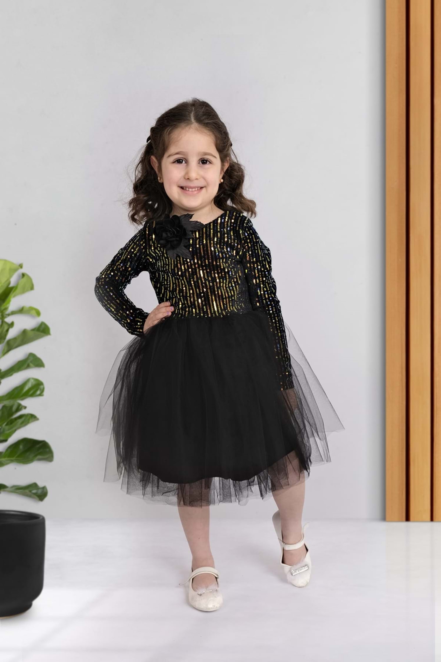 Saç tokası ile birlikte iki parçadan oluşan kız çocuk abiye elbise.