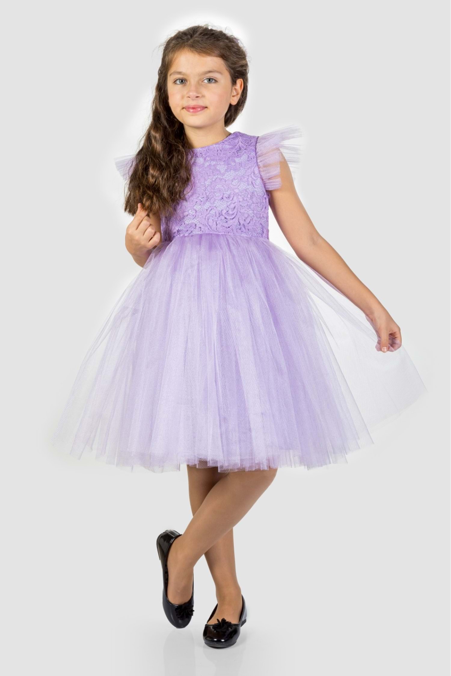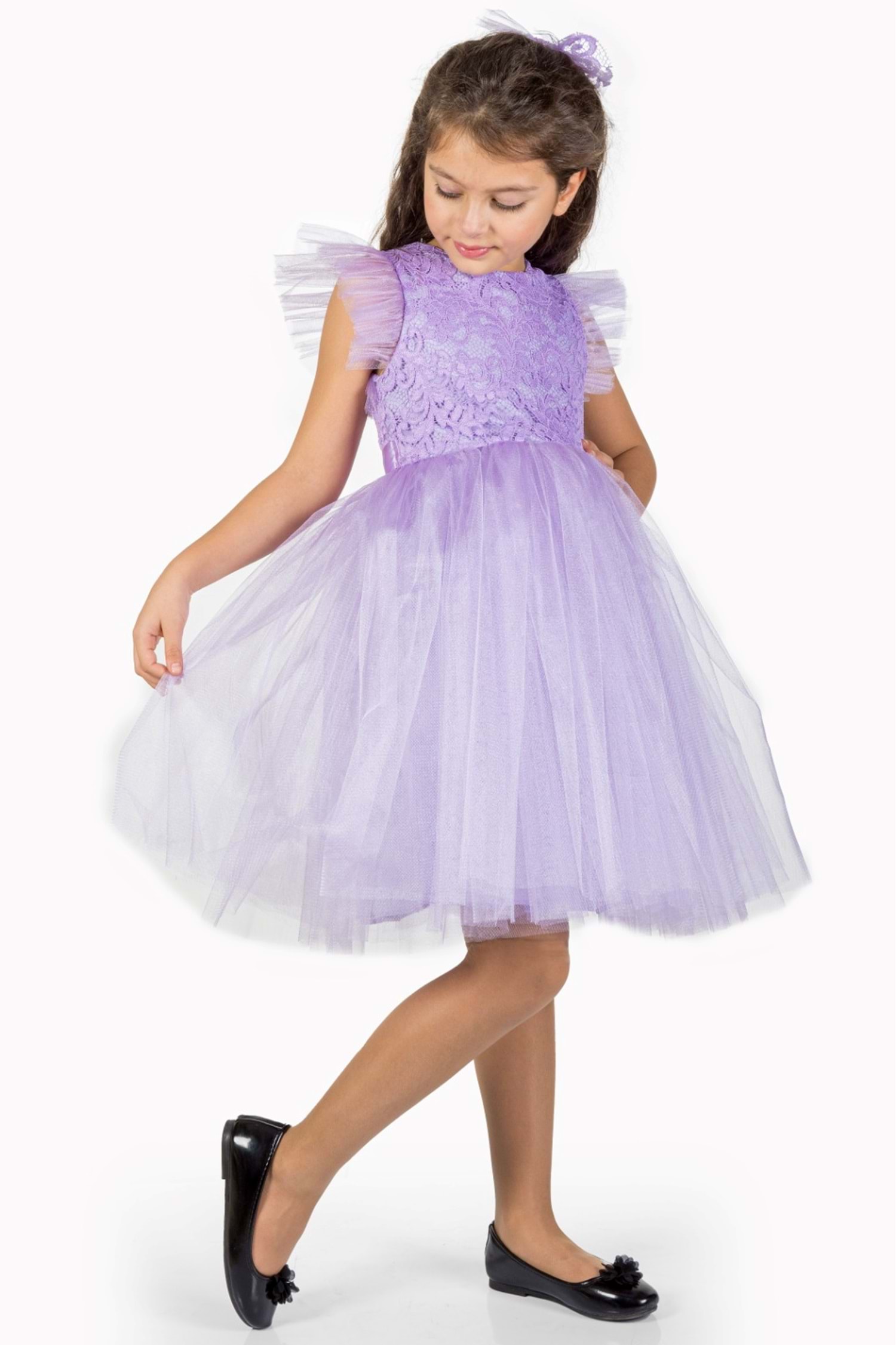 Saç tokası ile birlikte iki parçadan oluşan kız çocuk abiye elbise.