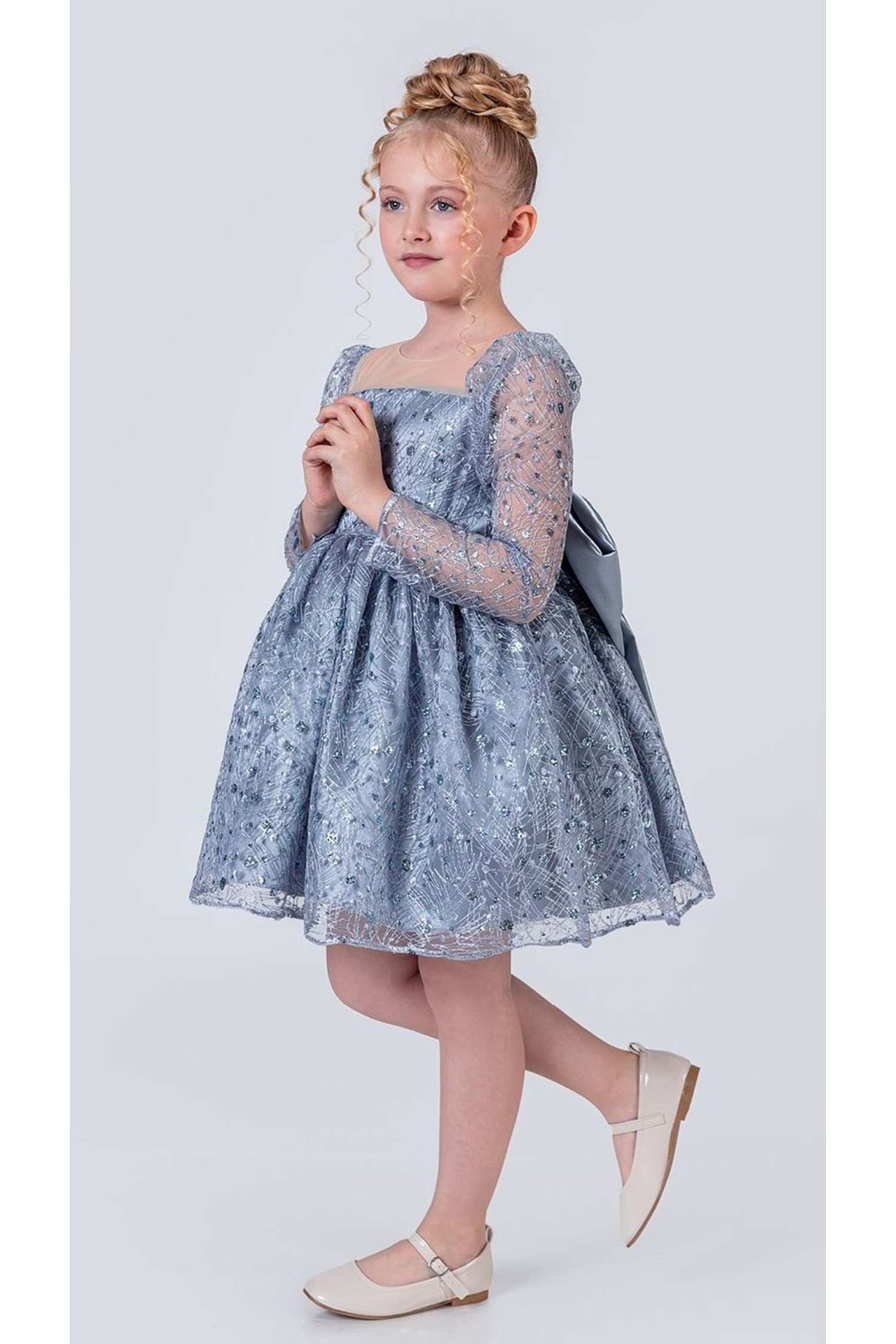 Kız Çocuk Abiye Elbise | Dantel Detaylı Fiyonklu Model