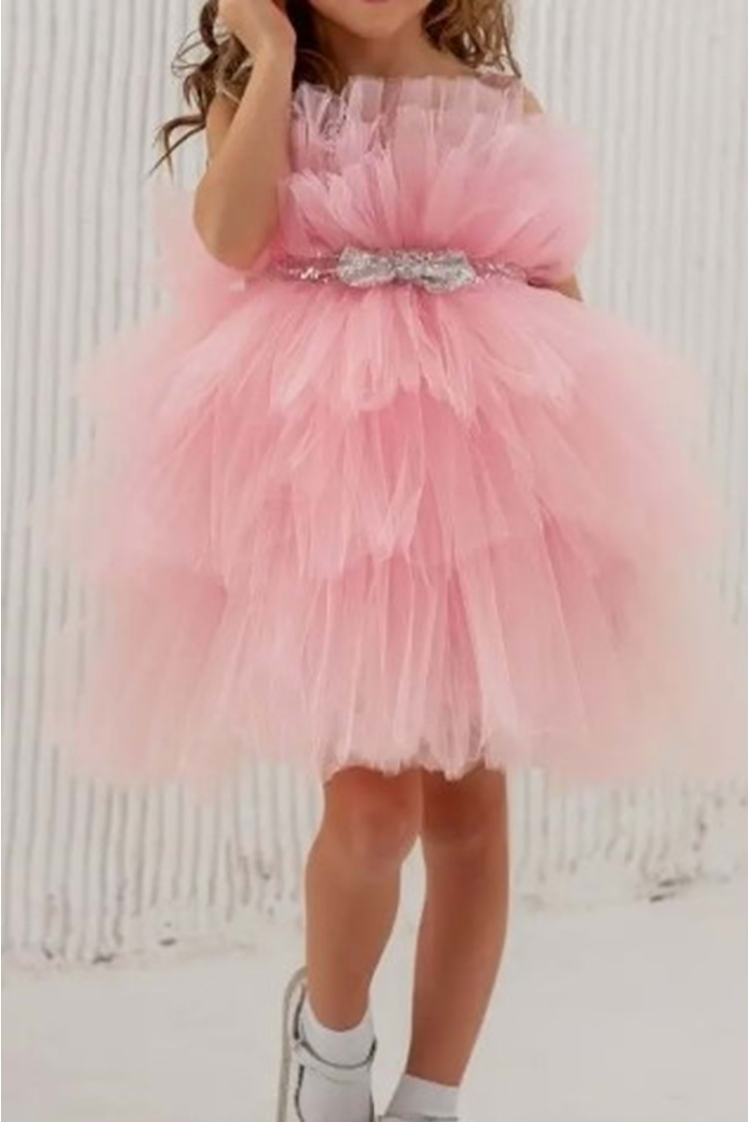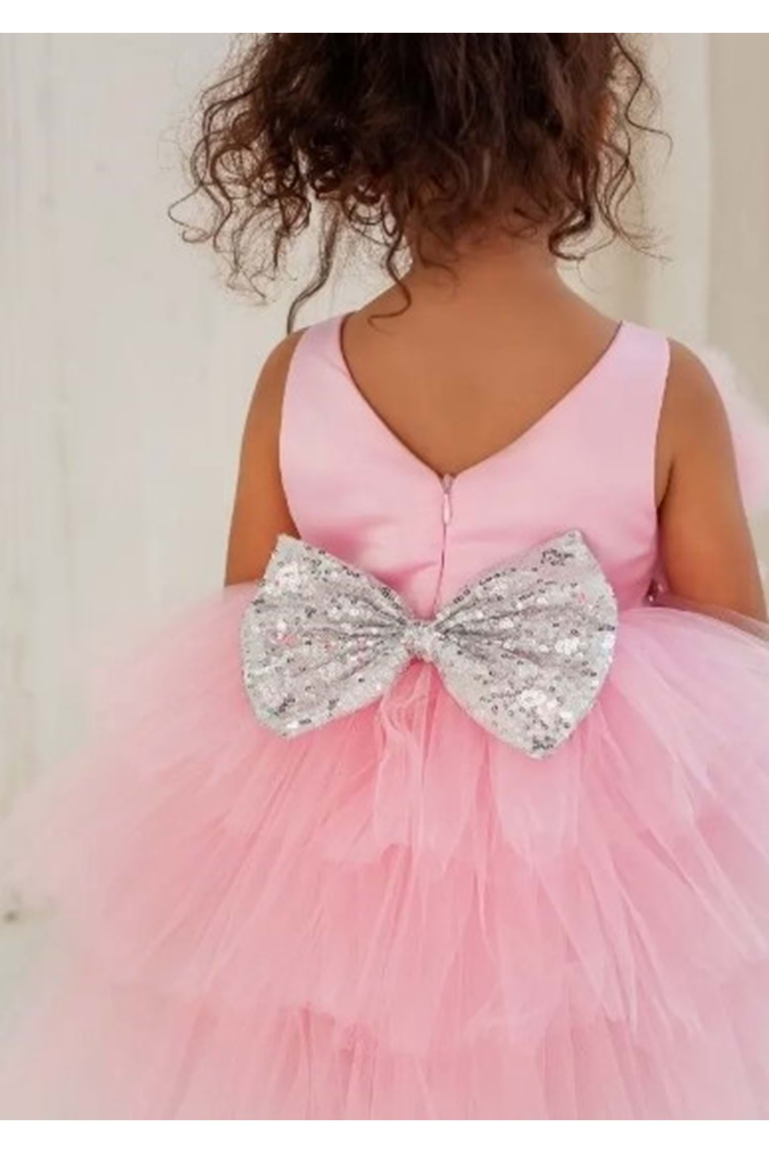 Elbisenin etek kısmında yer alan kat kat tül ve tütü detayları, elbiseye hacim kazandırırken küçük kızlara adeta bir masal kahramanı görünümü sunar. Kabarık ama hafif yapısıyla çocukların hareketlerini kısıtlamadan rahatlıkla oynamalarını sağlar. Tütülü tasarımı sayesinde hem gösterişli hem de eğlenceli bir stil sunar.