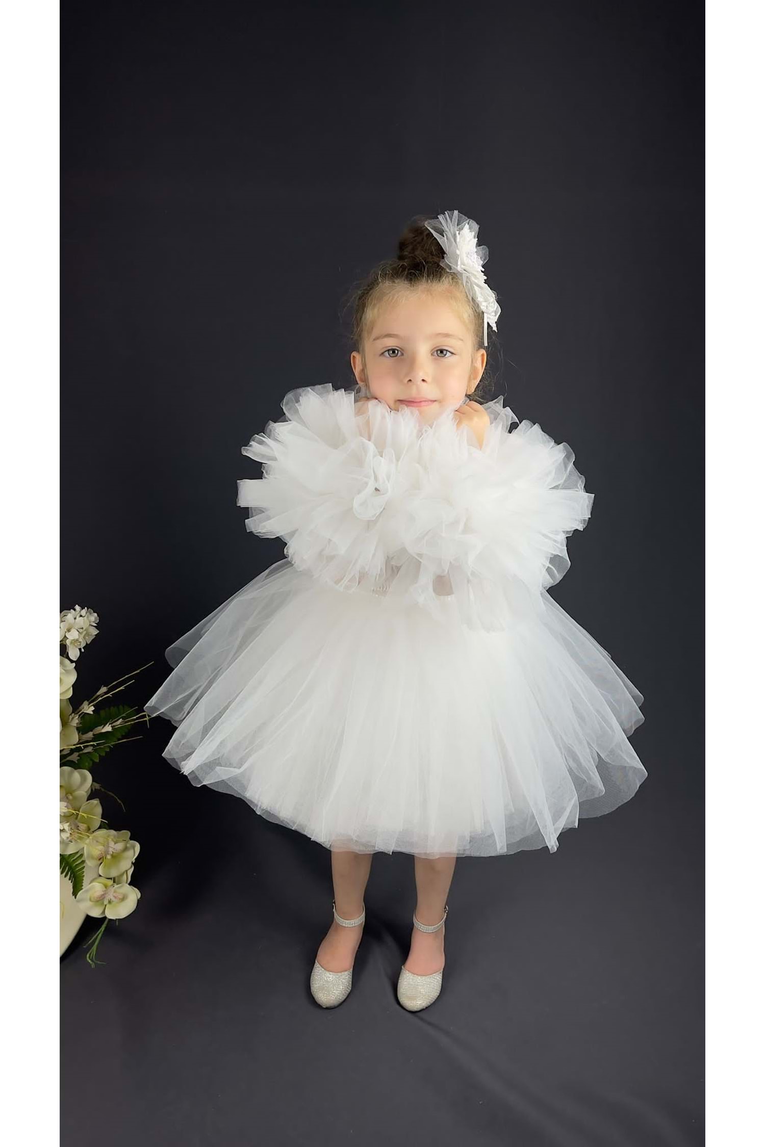 Minik prensesinizin özel günlerinde ışıltısını artıracak bu ponpon kollu tütü abiye elbise ile unutulmaz anılar biriktirin. Çeşitli renk seçenekleri arasından dilediğinizi seçin ve onların hayallerini gerçeğe dönüştürün!