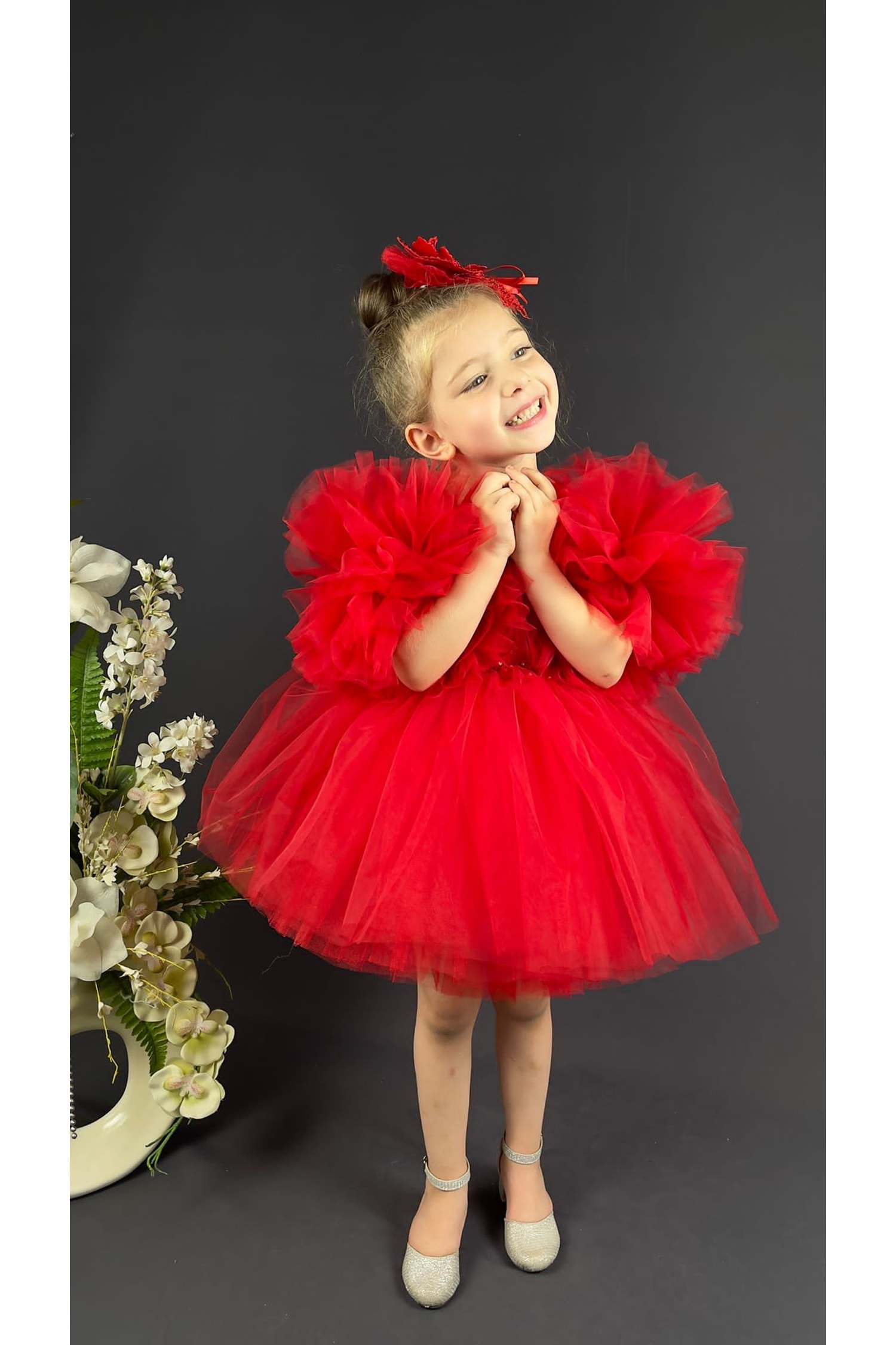 Minik prensesinizin özel günlerinde ışıltısını artıracak bu ponpon kollu tütü abiye elbise ile unutulmaz anılar biriktirin. Çeşitli renk seçenekleri arasından dilediğinizi seçin ve onların hayallerini gerçeğe dönüştürün!