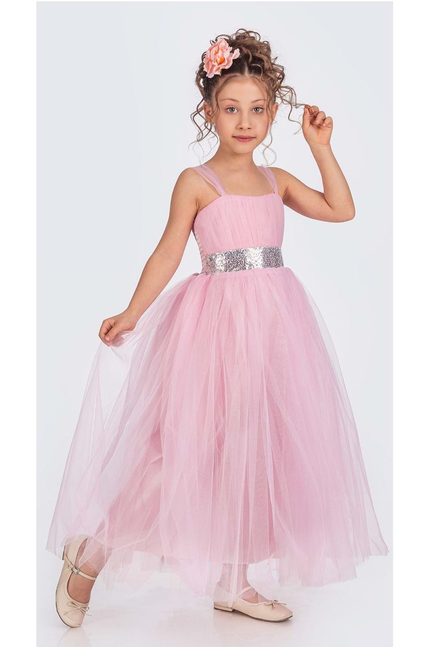 Sırt Gipeli Tüllü Saten Kız Çocuk Abiye Elbise