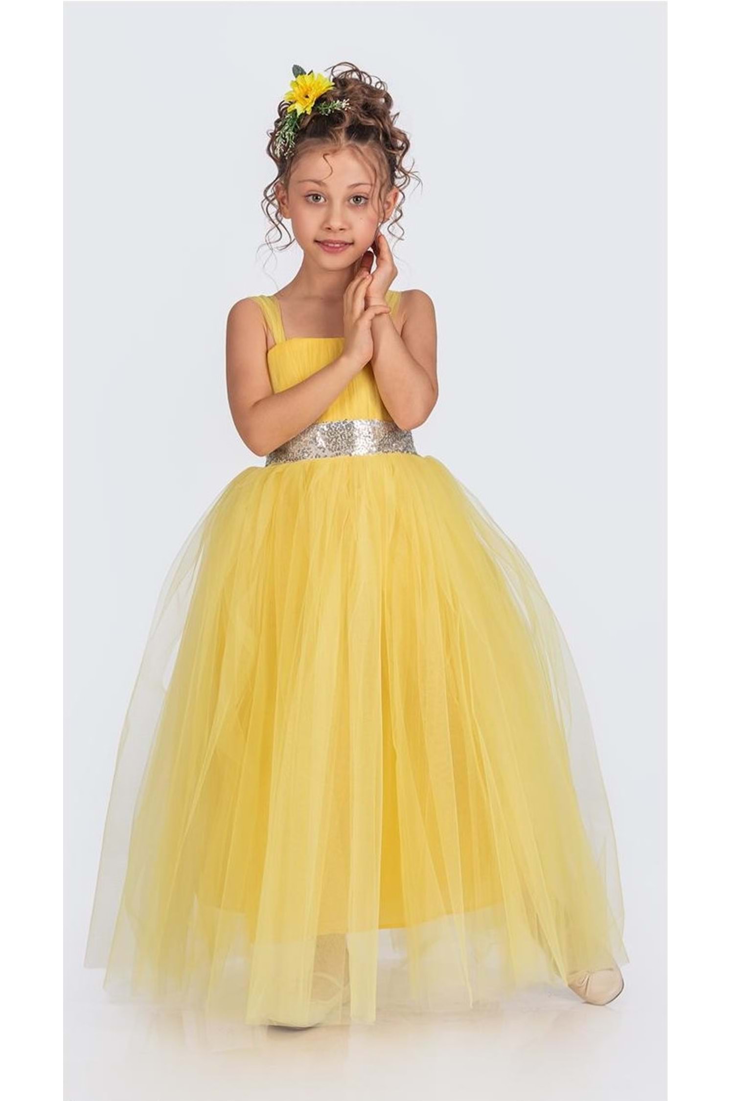 Elbisenin sırt kısmı elastan gipeli yapıya sahiptir ve vücuda uyum sağlayarak çocuğunuzun gün boyu rahat etmesine yardımcı olur. Tül destekli kol askıları ve bel kısmındaki pul payet işlemeleri elbisenin şıklığını ön plana çıkarır. Alt bölüm pamuk astar desteklidir ve hassas ciltler için uygundur.