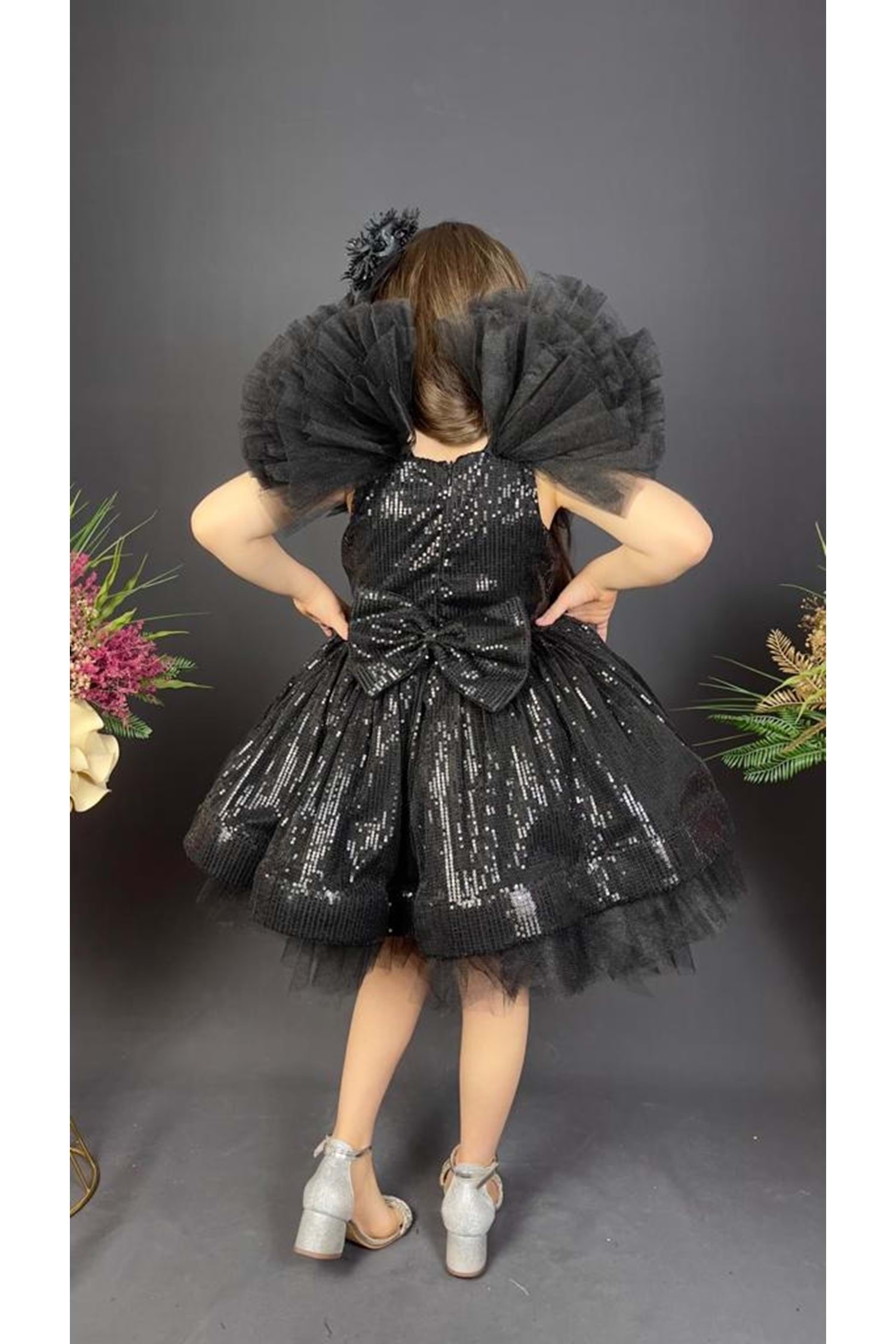 Tavus Kol Payetli Kumaş Kız Çocuk Elbise MNK0537