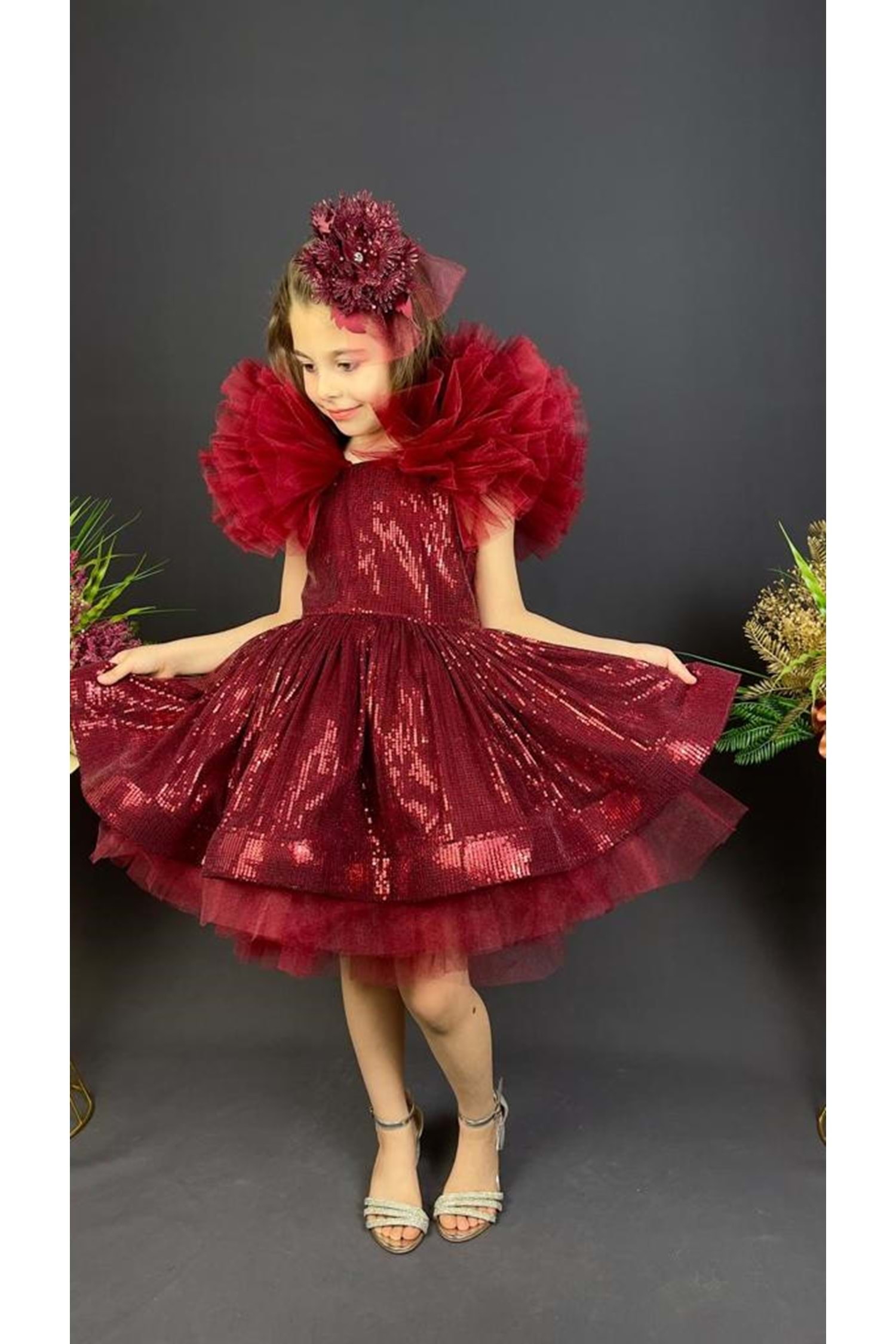 Saç tokası ile birlikte iki parçadan oluşan kız çocuk abiye elbise.