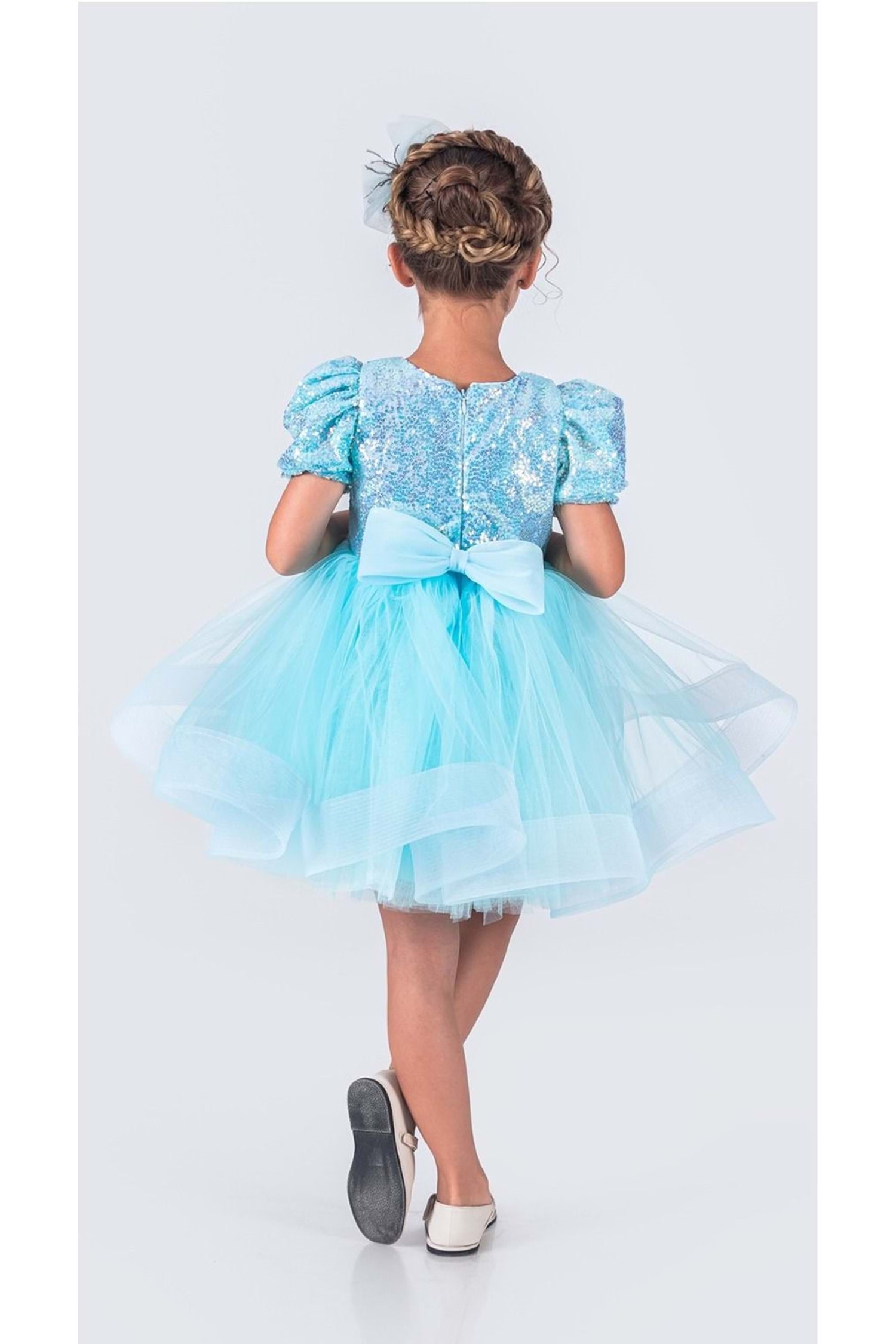 Tütü Gren Etekli Kız Çocuk Pul Payetli Kısa Kol Kikidi Elbise MNK0601