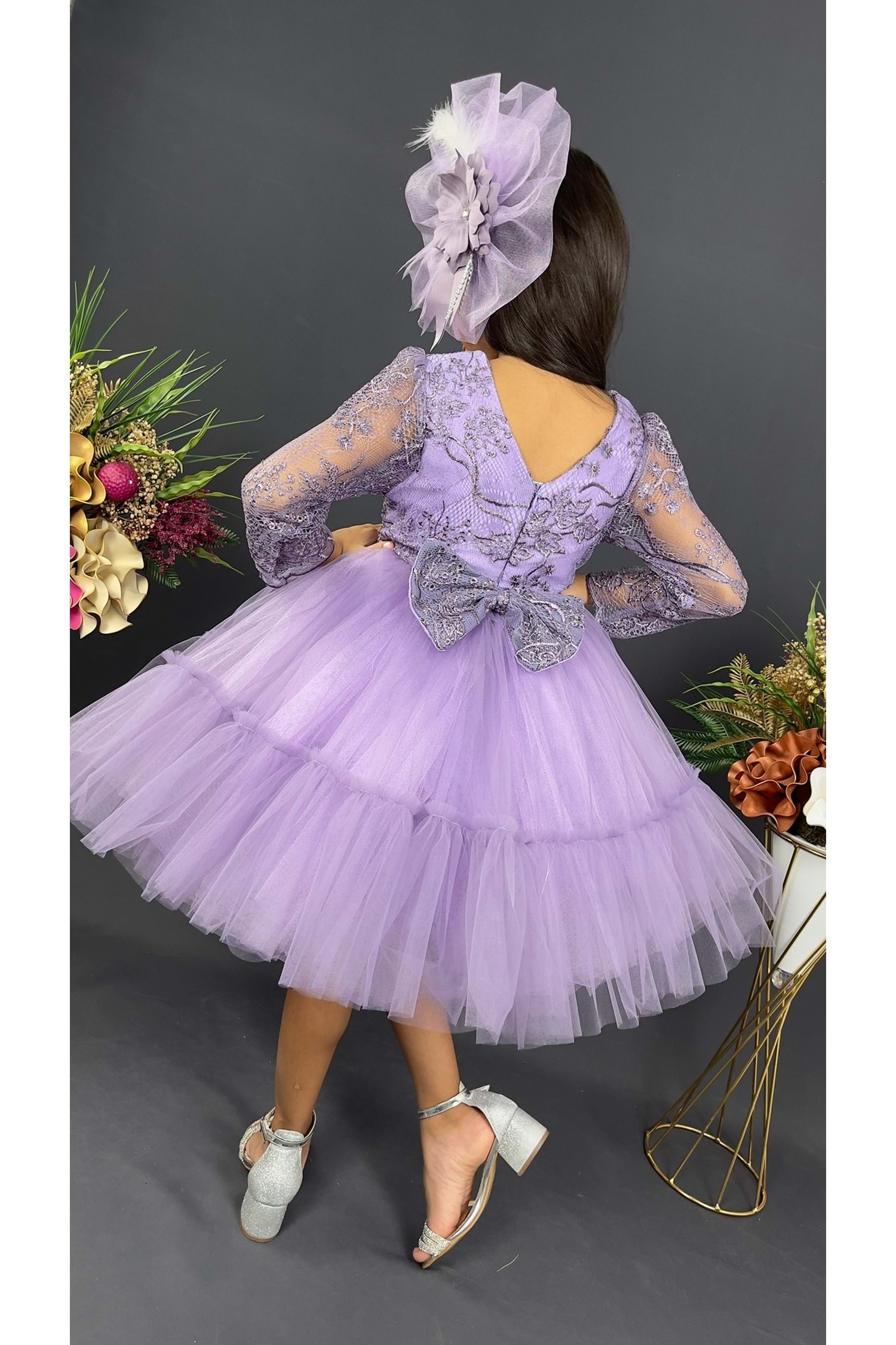 Beden kalıp ölçüleri standartlara uygundur. Alt kısım pamuk astar destekli. Sırt fermuarlı. Tül kumaş ile kabartılmıştır.