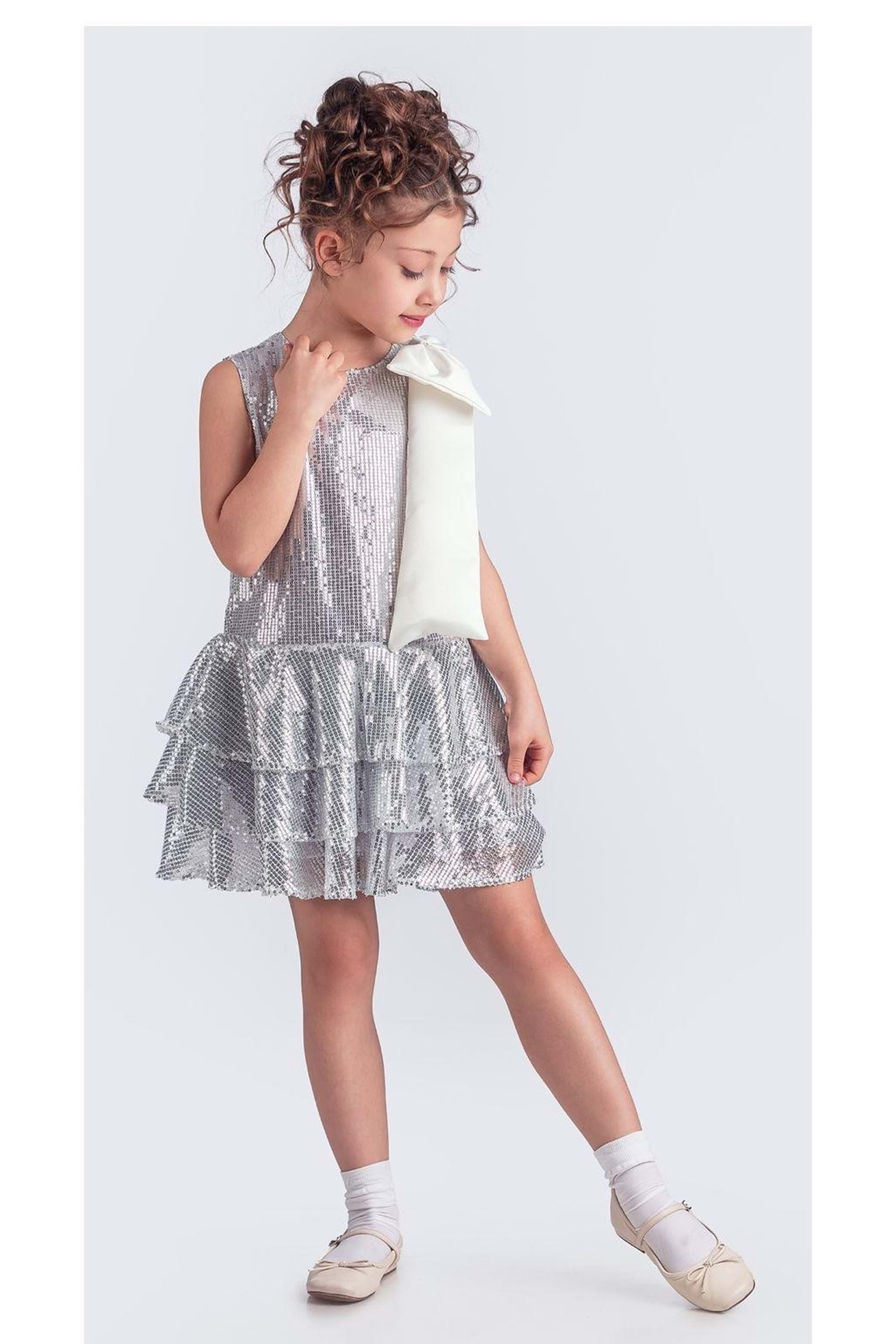 Yaka Fiyonklu Pul Payet Işıltılı Kız Çocuk Abiye Elbise – Özel Günlerin Parlayan Yıldızı