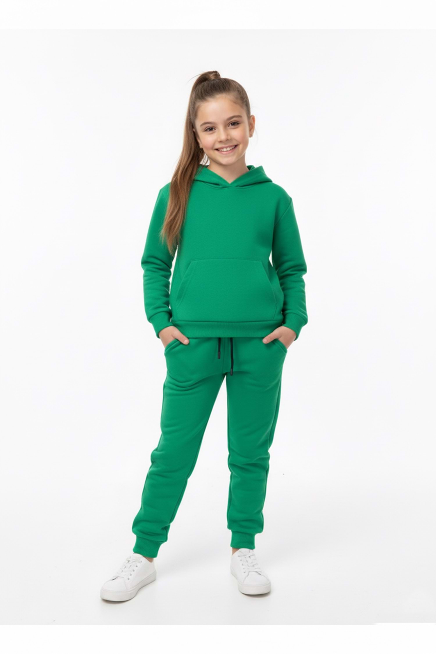 Basic Düz Kanguru Cepli Kapüşonlu Çocuk Eşofman MNK0611