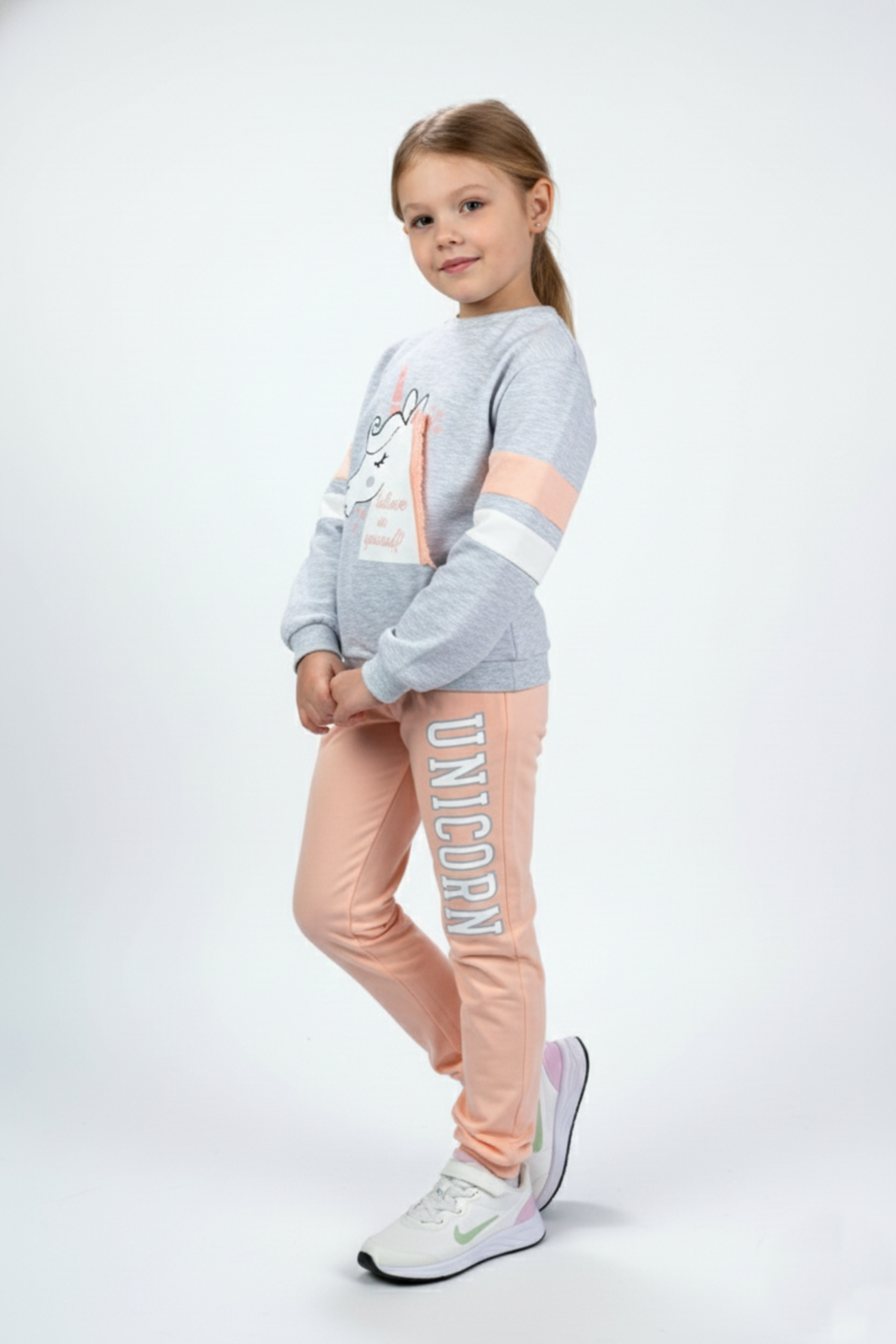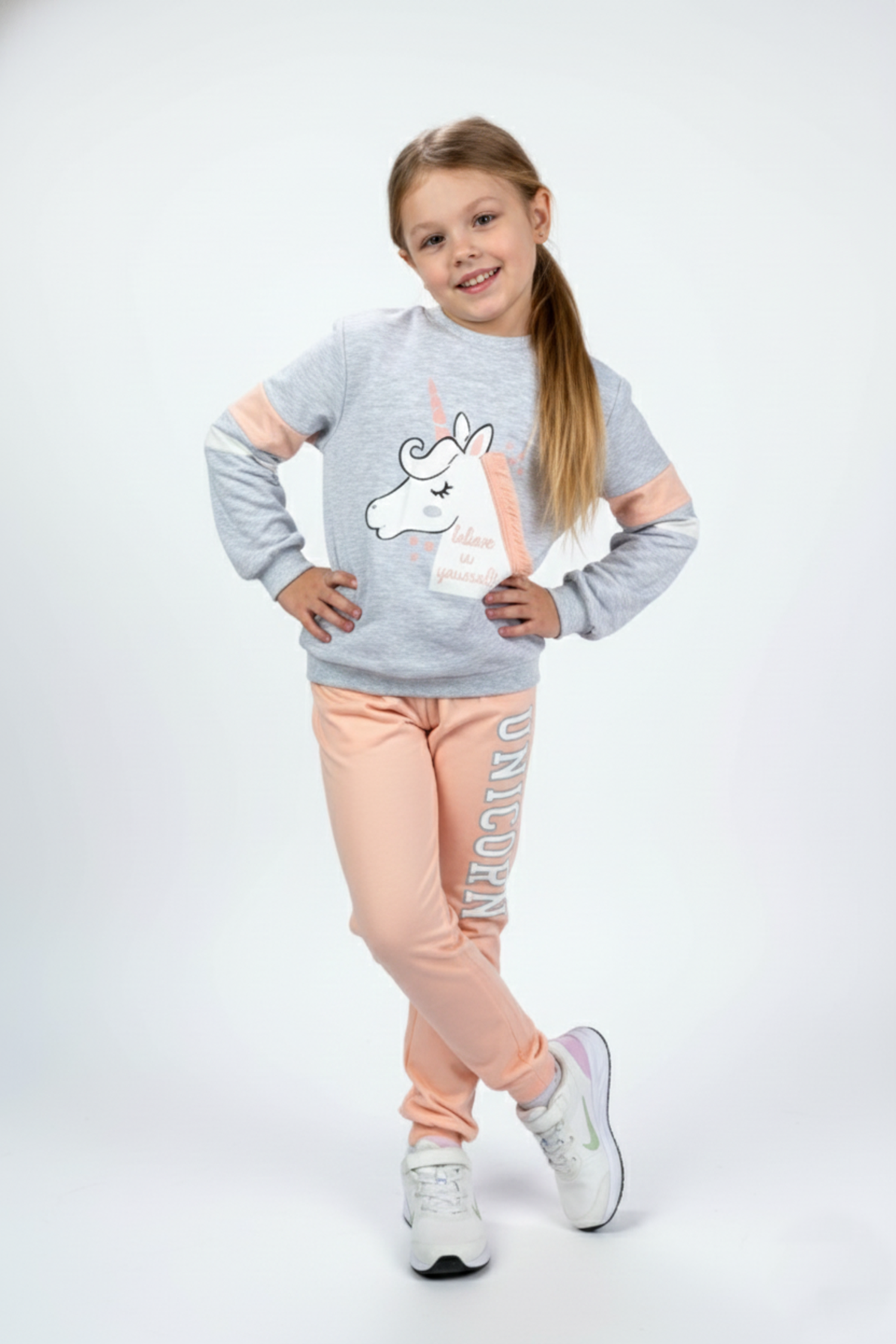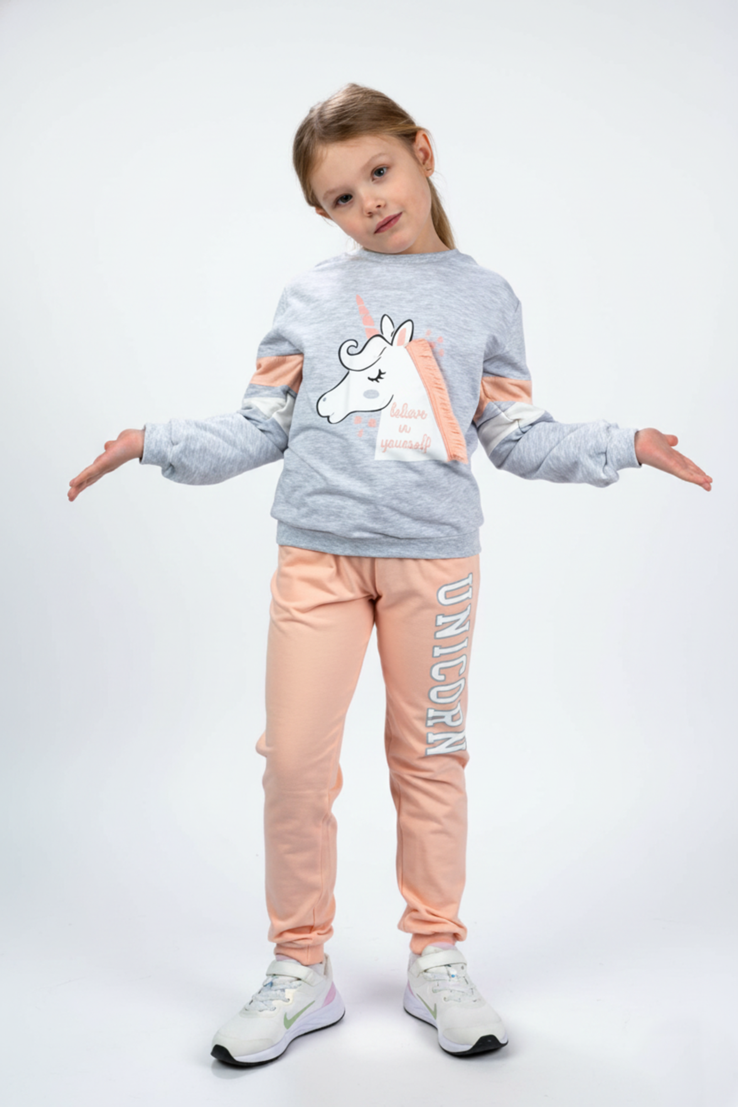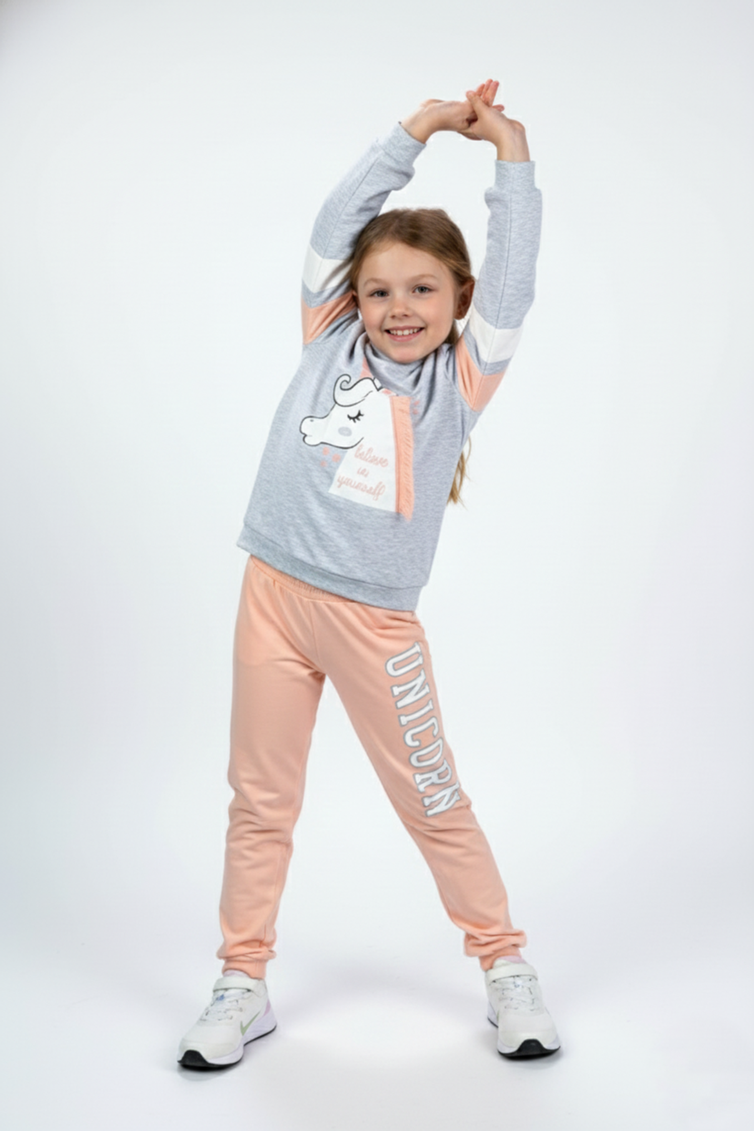 Kız çocuklarının enerjisine ve renkli dünyasına eşlik eden bu Unicorn baskılı eşofman takımı; yumuşak dokusu, rahat kalıbı ve sevimli tasarımıyla günlük kullanım için mükemmel bir tercih sunar.