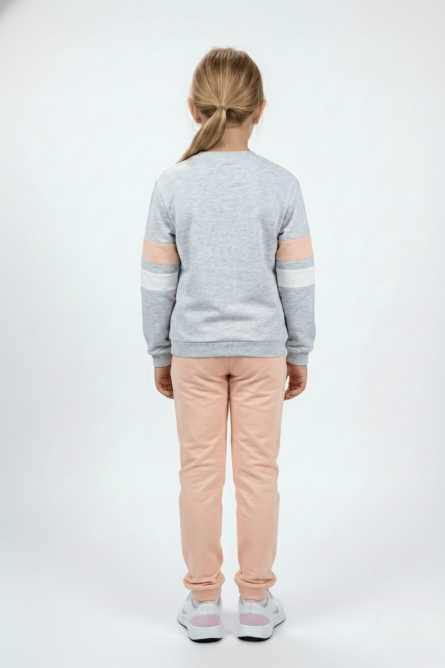 Bu eşofman takımının sunduğu somon, pembe, gri, lila ve koyu somon renk seçenekleri yalnızca estetik bir tercih değil; çocukların ruh halini, enerjisini ve günlük motivasyonunu olumlu etkileyen özel tonlardır.