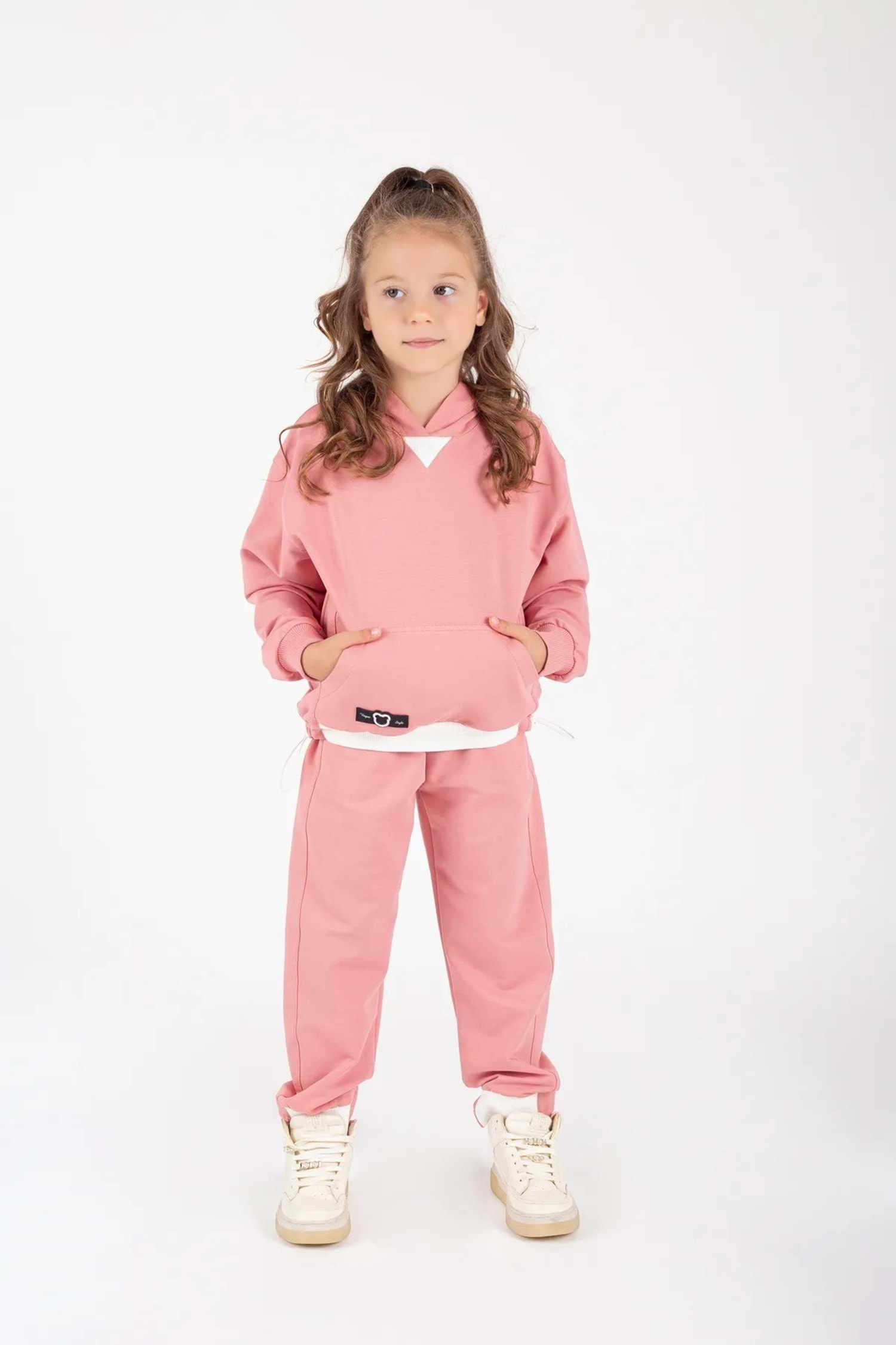 Kız Çocuk Kanguru Cepli Beli Lastik Detaylı Günlük Eşofman Takımı M00754