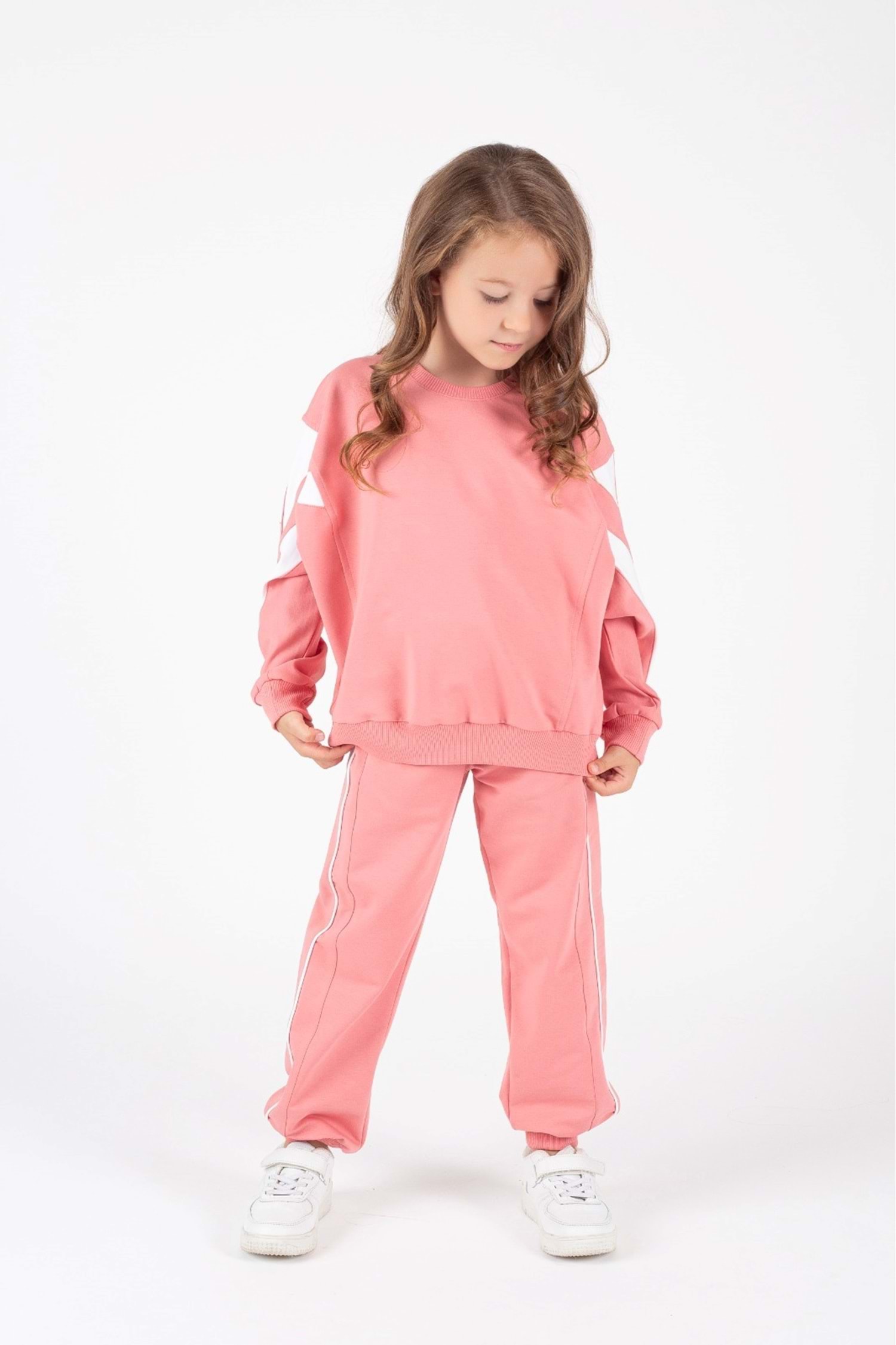 Kız Çocuk Yarasa Kol Şerit Detaylı Alt-Üst Eşofman Takımı M00755