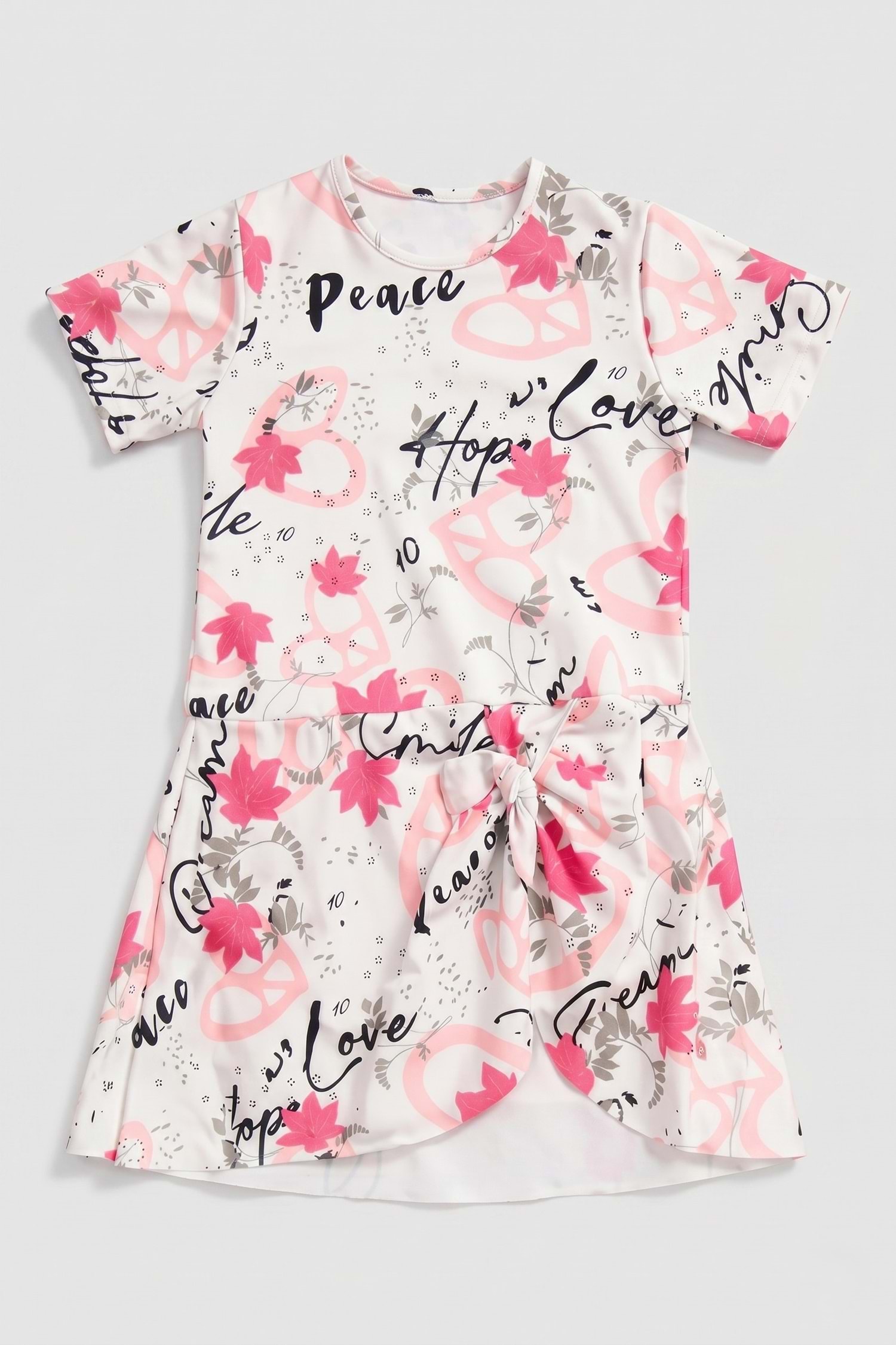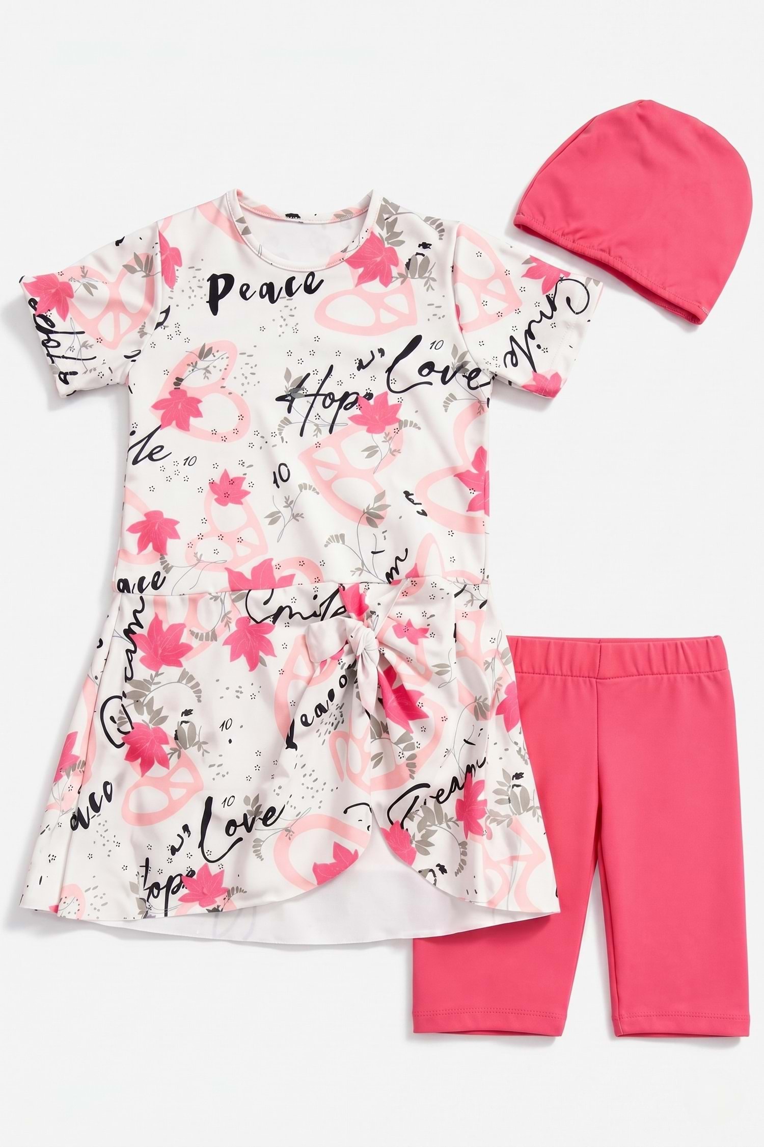 Kız Çocuk Desenli Mayo Takımı - Bone ve Şort Dahil Üçlü Deniz ve Havuz Mayosu M00814