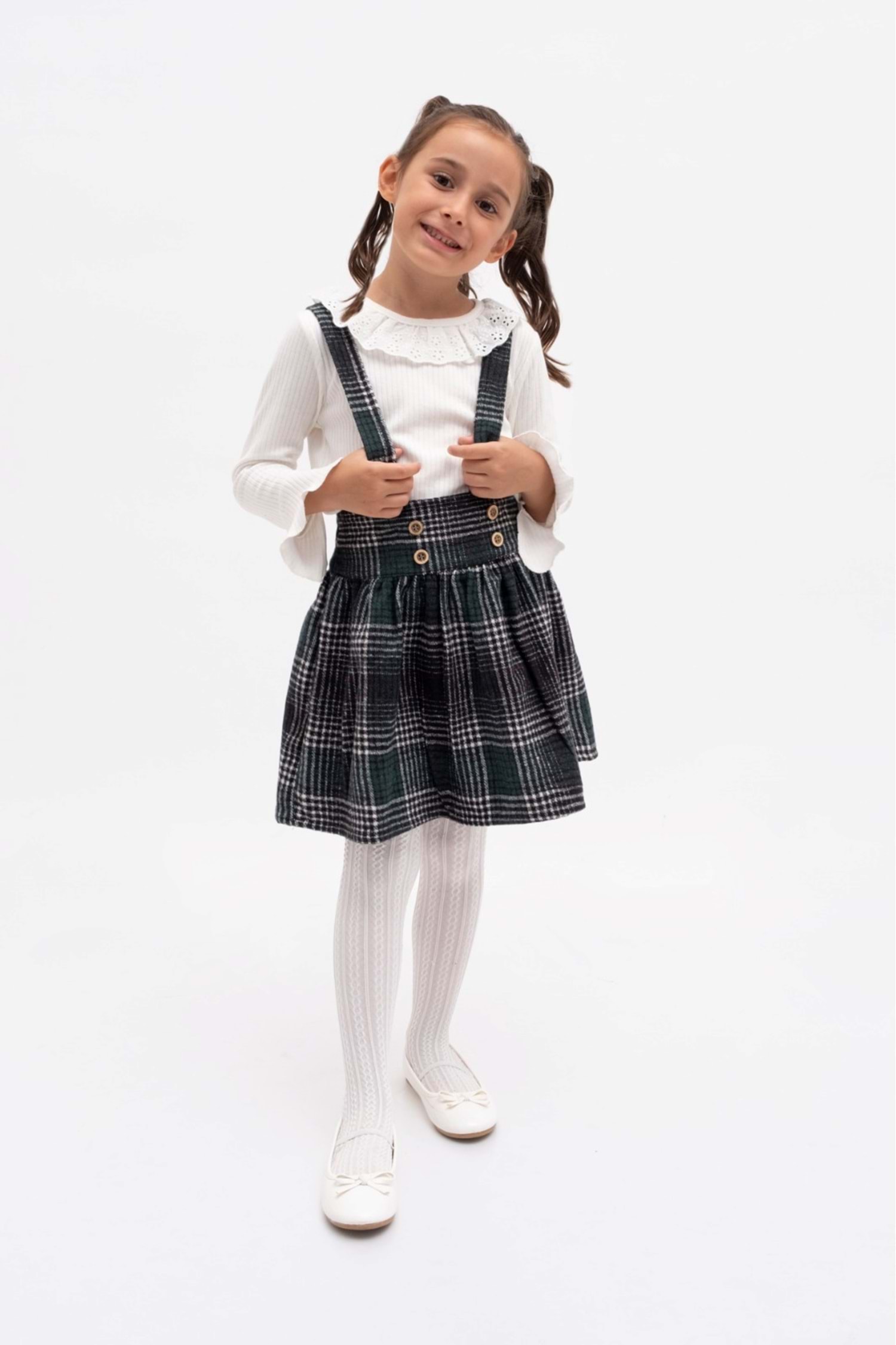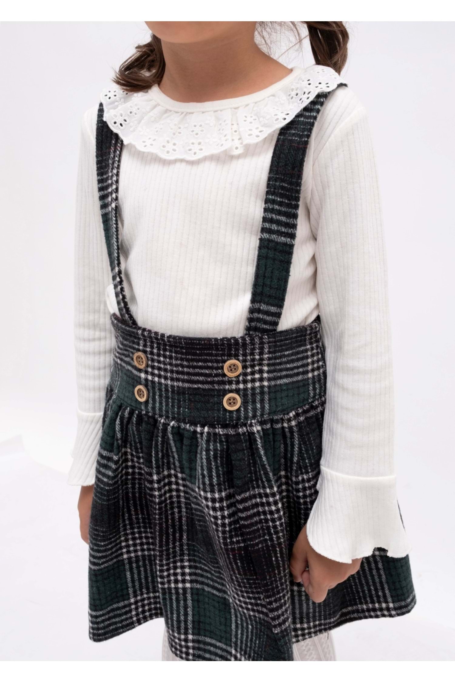 Ekose Desen Kız Çocuk Salopet Etekli Badili Takım MNK2148