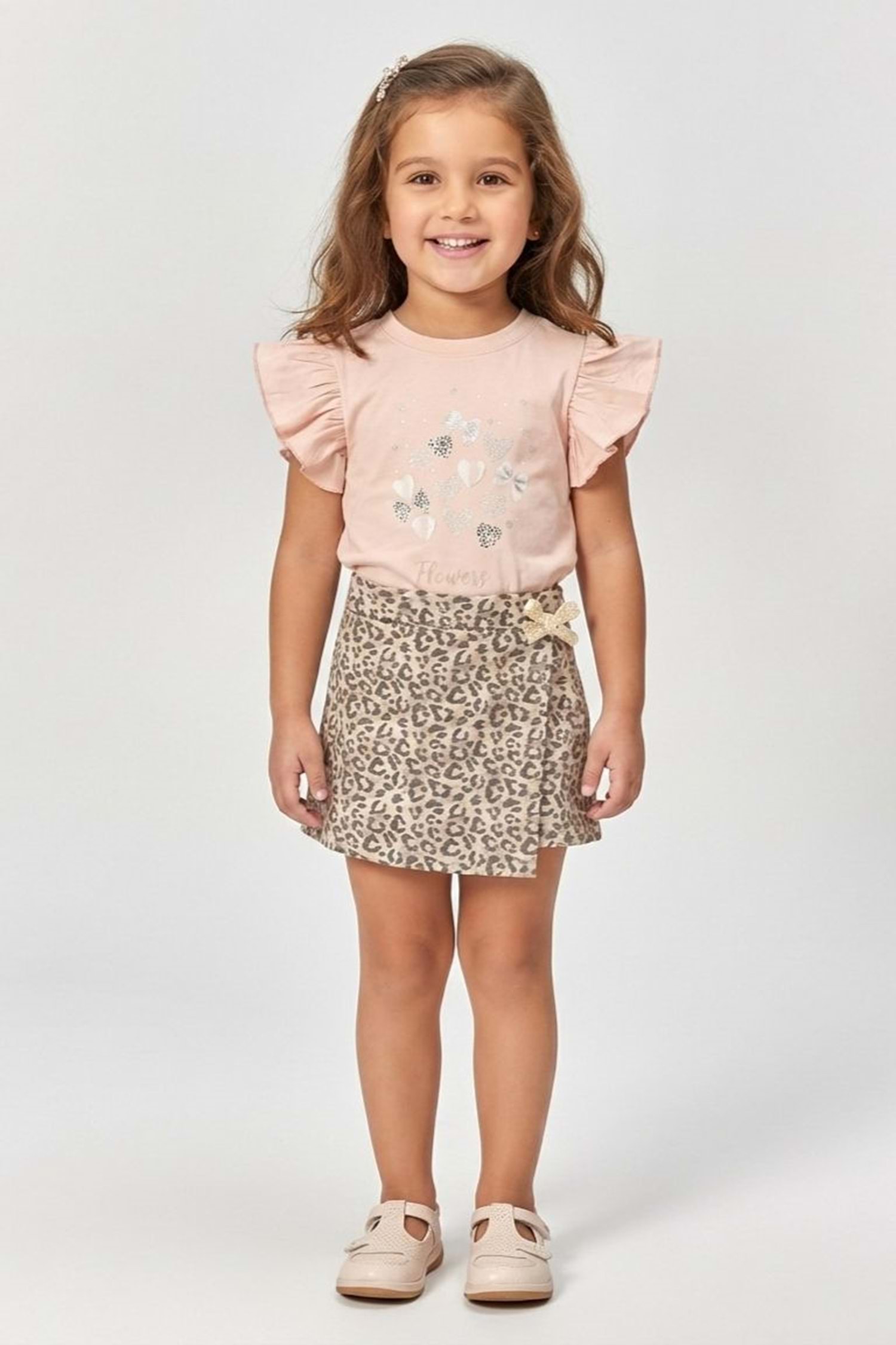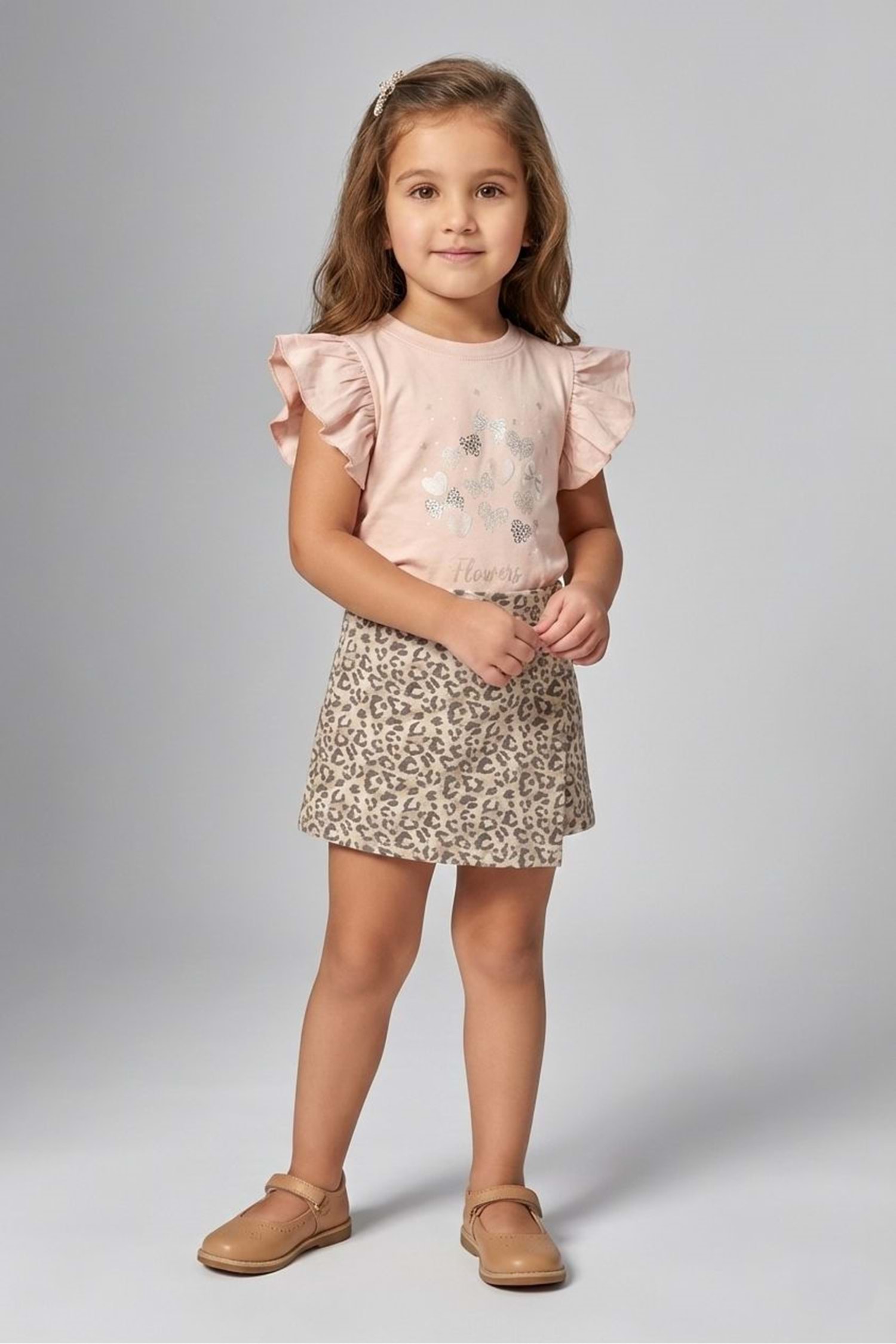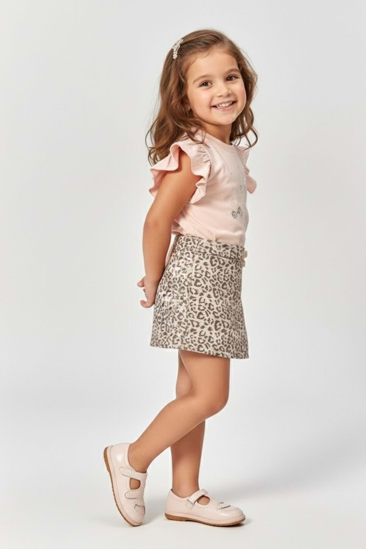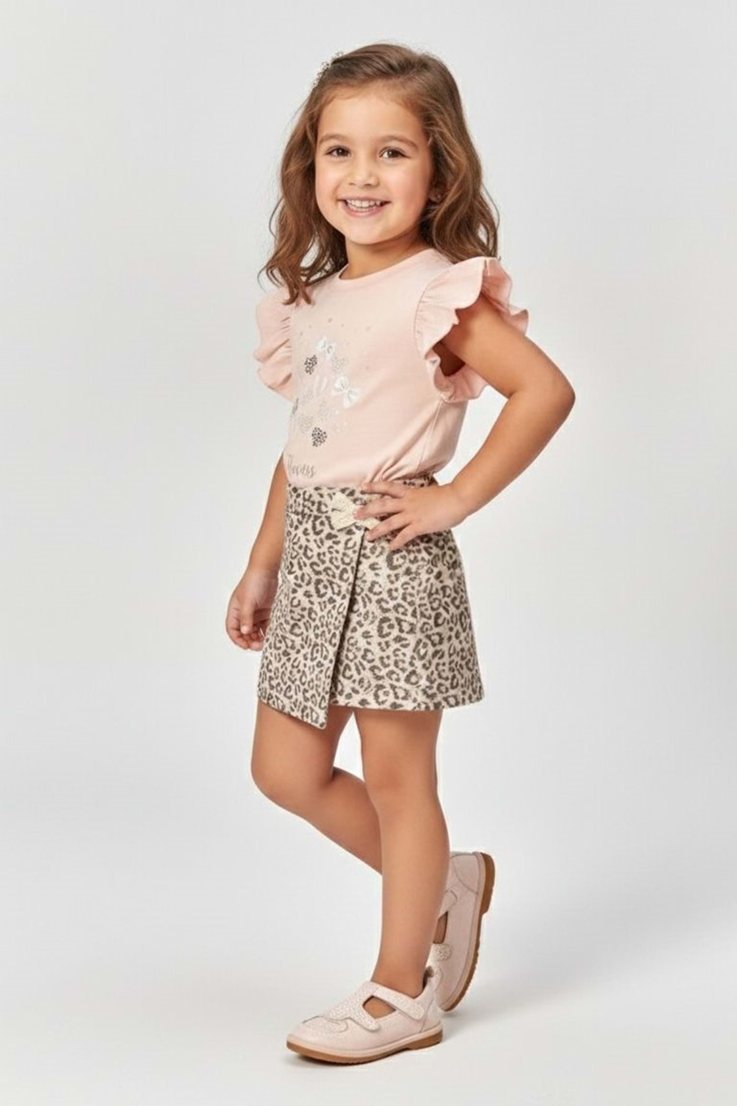 Kız Çocuk Leopar Şort Etek & Fırfırlı Tişört 2li Tarz Kombin M00801
