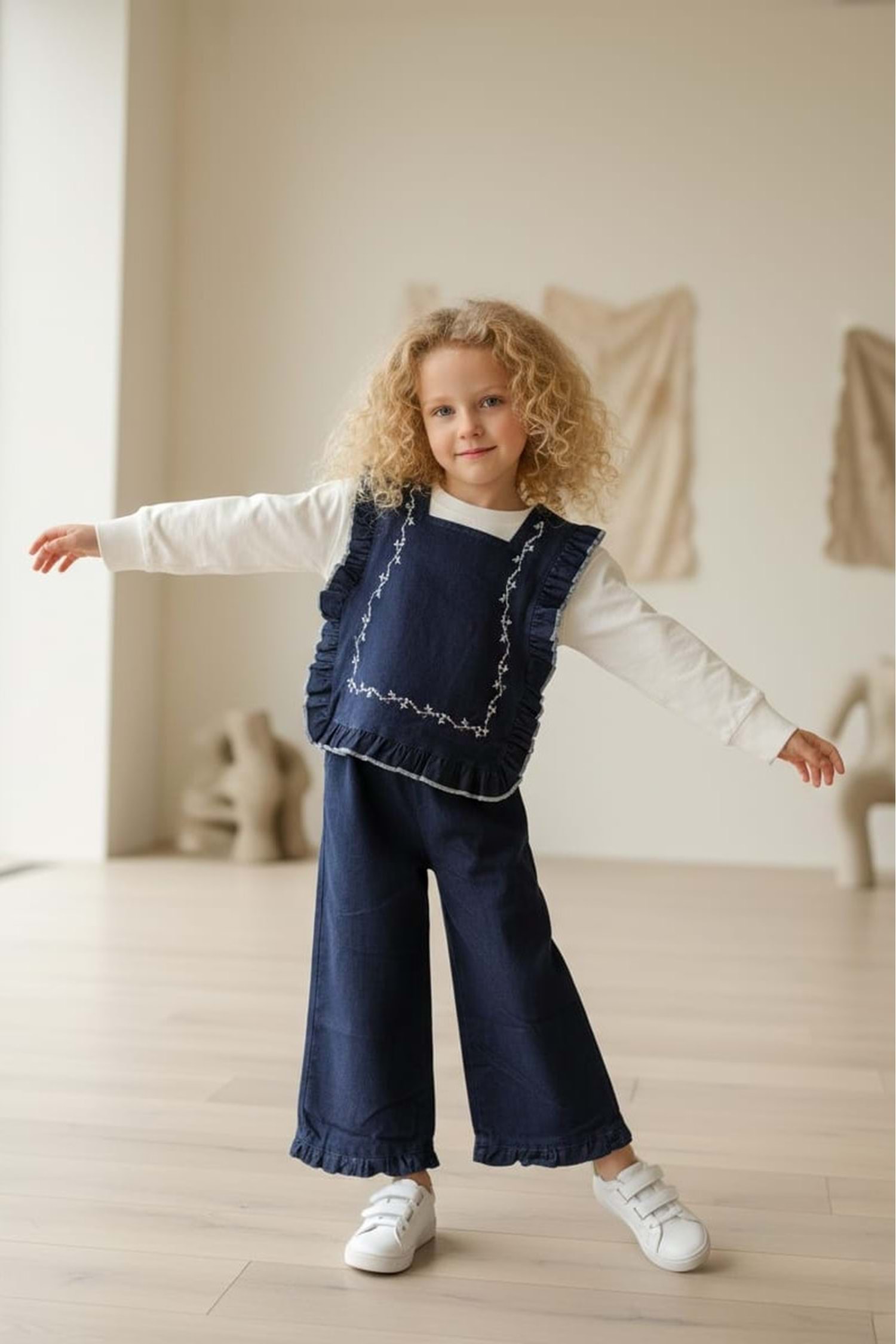 Kız Çocuk Otantik Kot Pantolon ve Bluz Takımı M00797