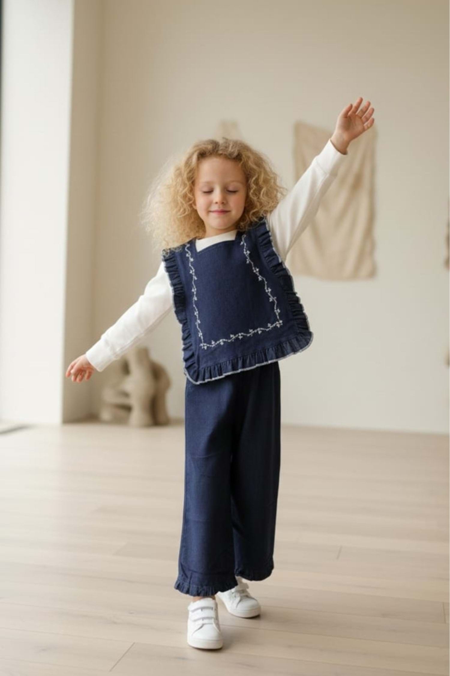 Kız çocukları için tasarlanan bu kot pantolon ve bluz takımı, günlük kullanımda rahatlık ve şıklığı bir arada sunar. 3-12 yaş aralığına uygun olan ürün, hareketli çocuklar için konforlu bir alternatiftir.