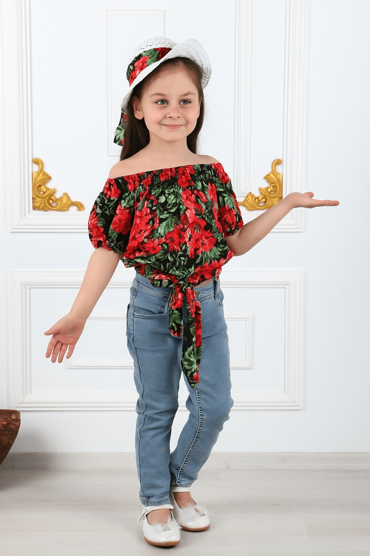 Miniklerin Yaz Neşesi: 2, 3, 4 ve 5 Yaş İçin Şık Kot Pantolon, Bluz ve Şapka Takımı