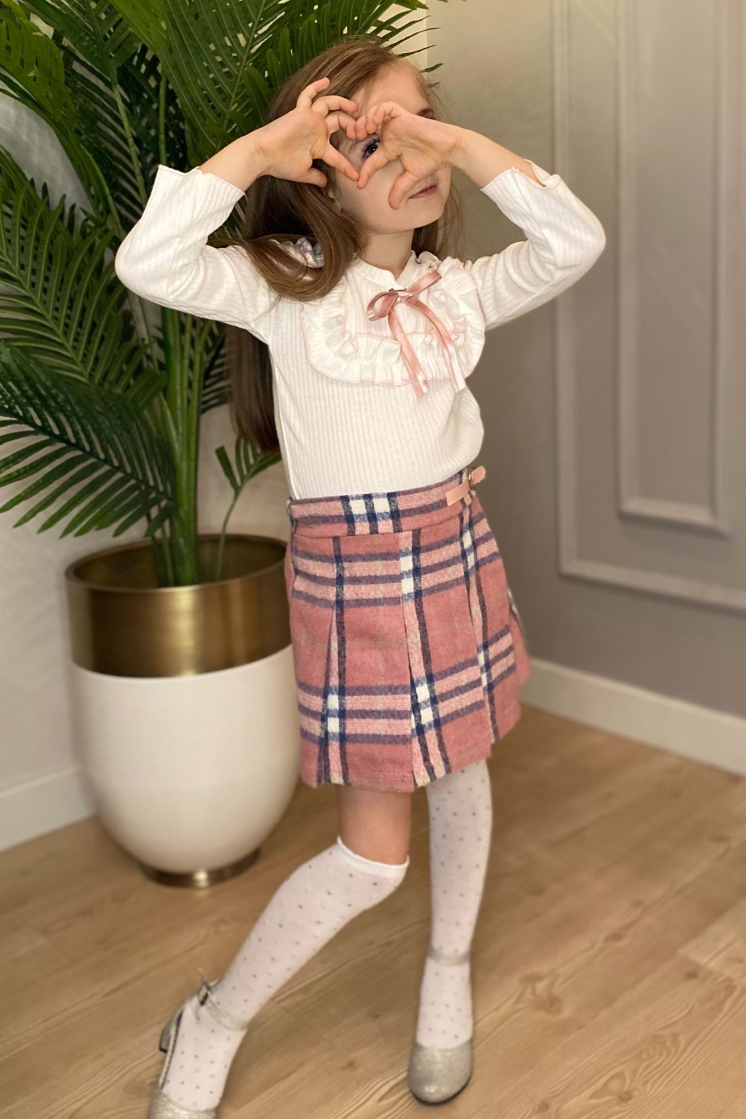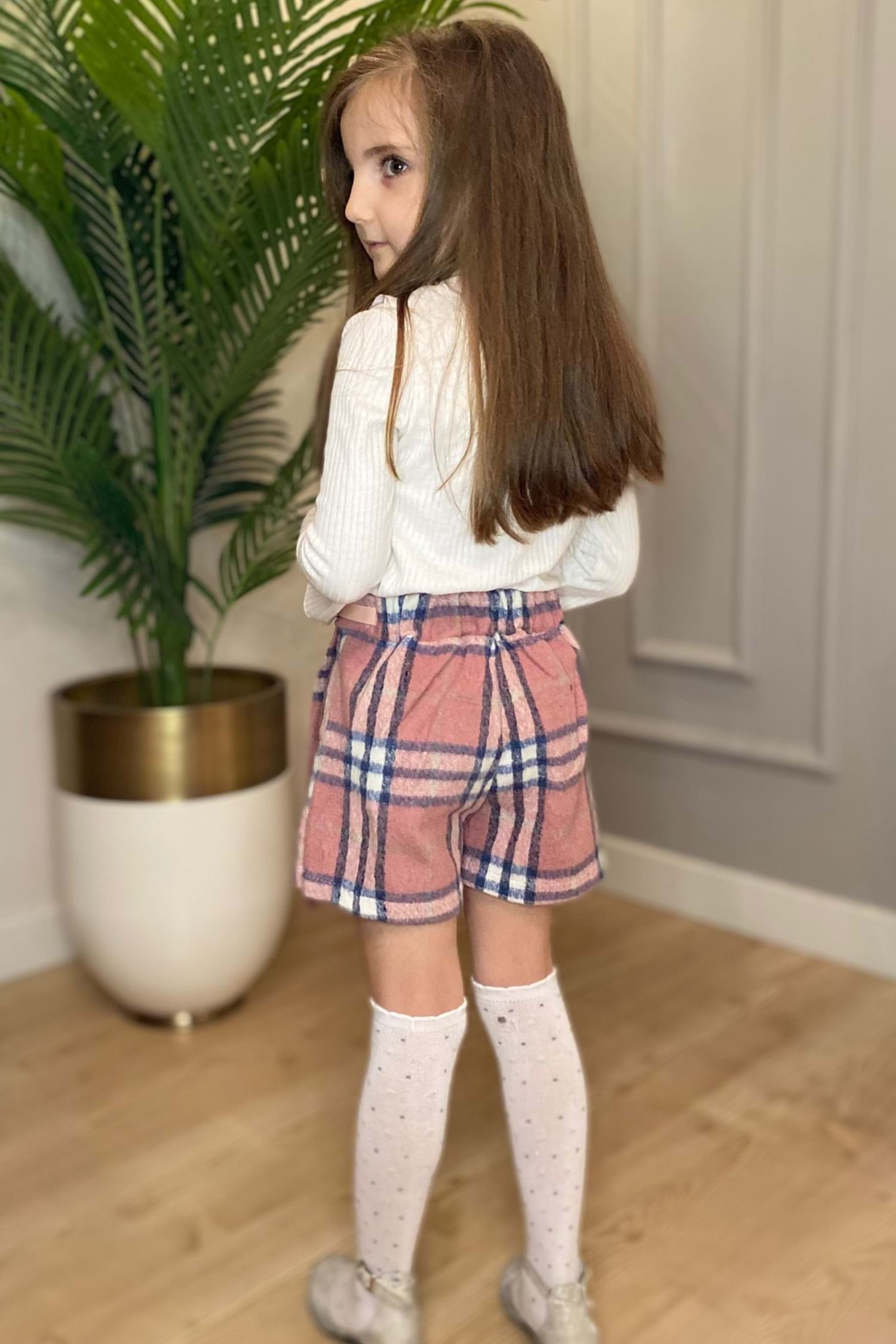 Pamuklu kumaştan imal edilmiş şort etekli iki parçadan oluşan kız çocuk takım
